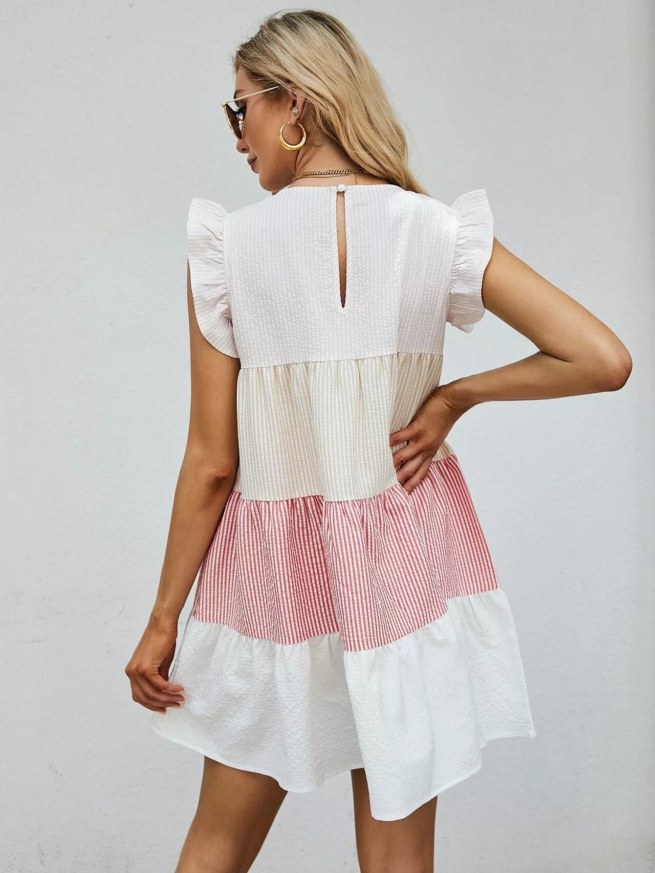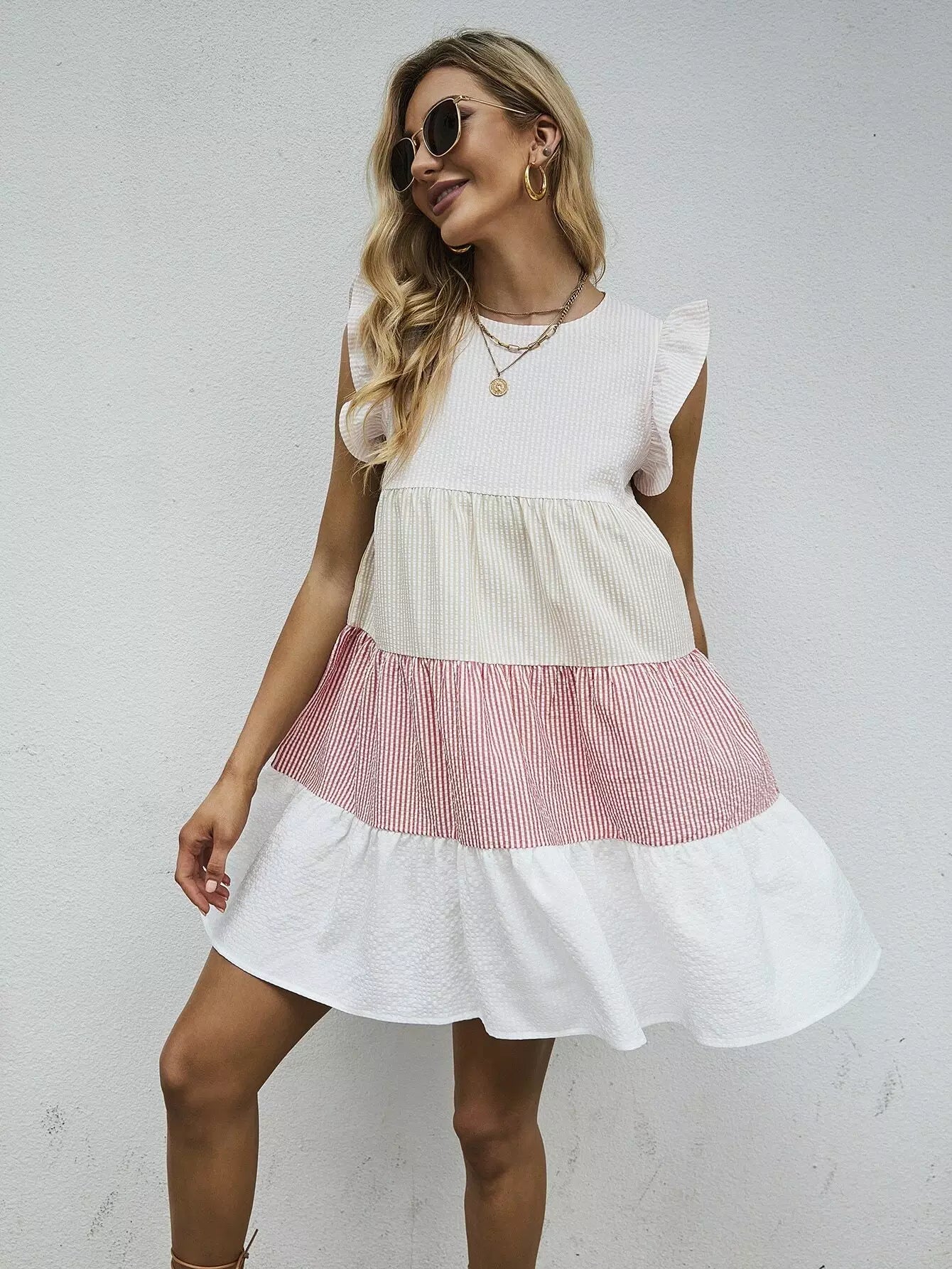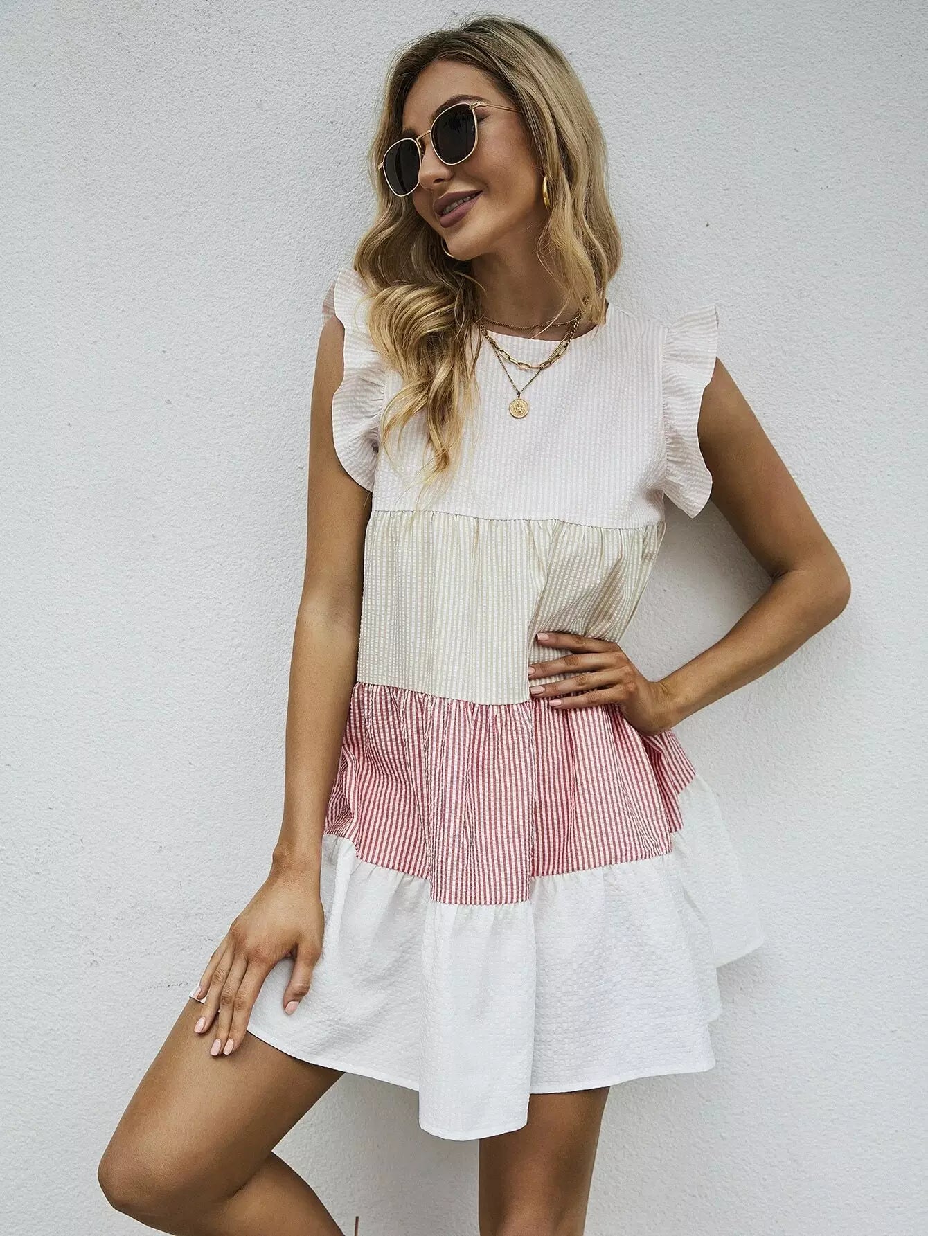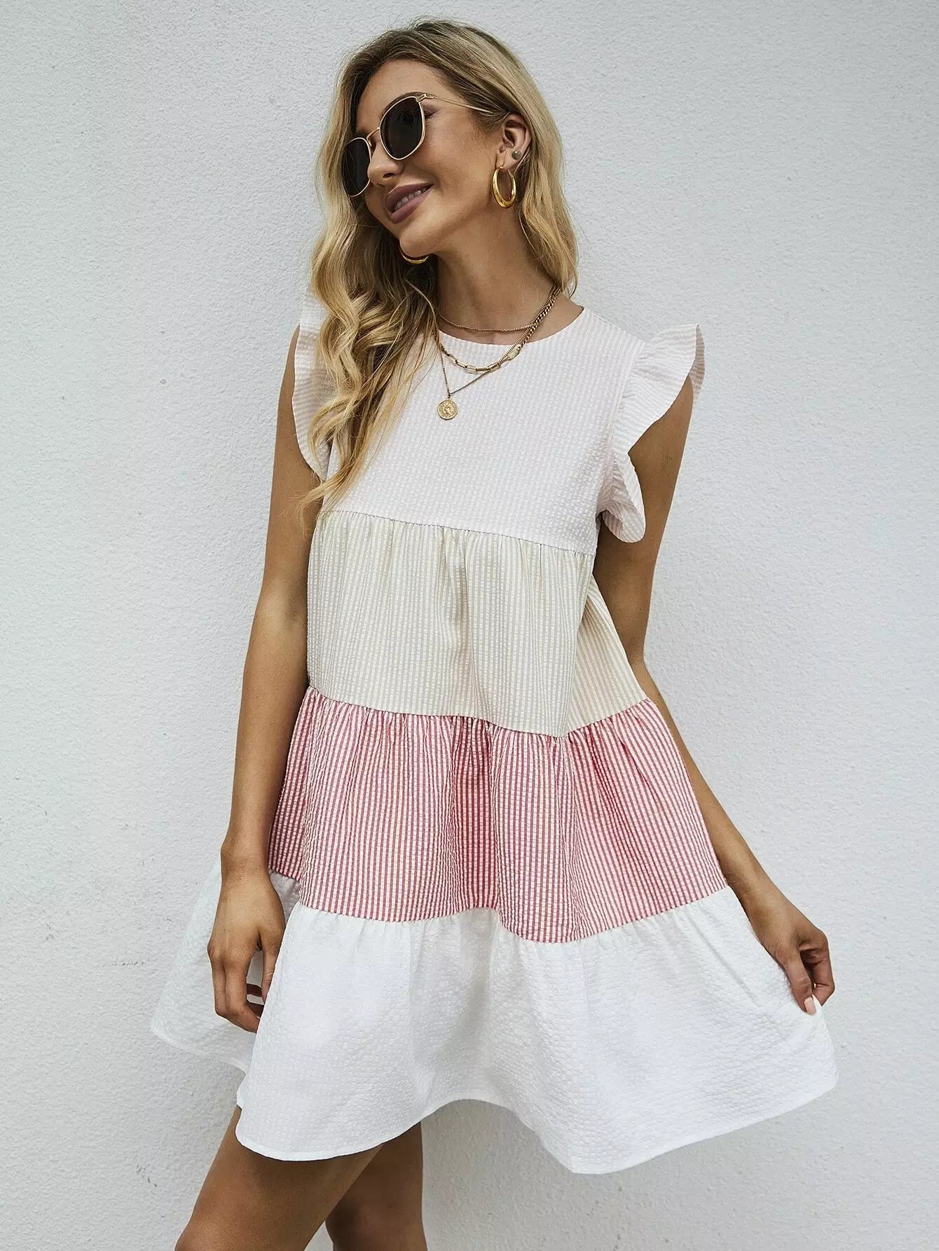 فستان قصير مخطط بالألوان مخطط بالألوان