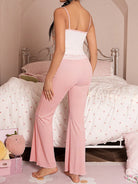 Contrast Color Lace Tie Bow Romantic Girl Camisole & Trousers Pajama Set