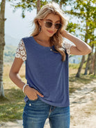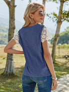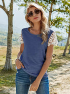 تي شيرت بلون مغاير من الدانتيل المخرّم بلون مغاير