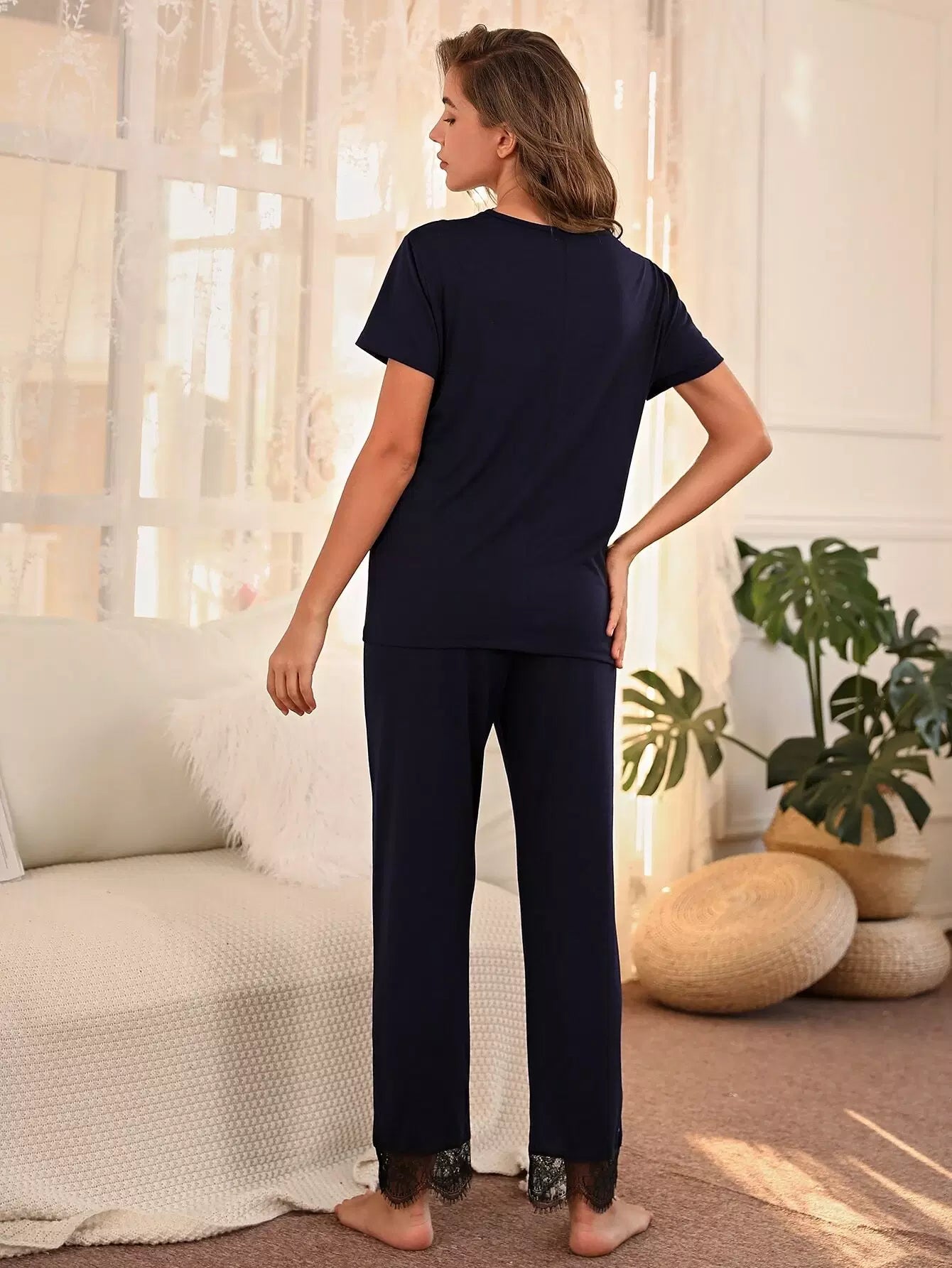 طقم بيجامة من الدانتيل الملون بلون مغاير