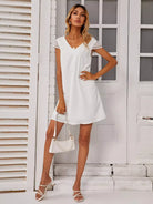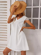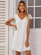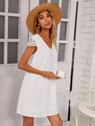 للنساء - فستان تونيك برقبة على شكل حرف V من الدانتيل المتباين