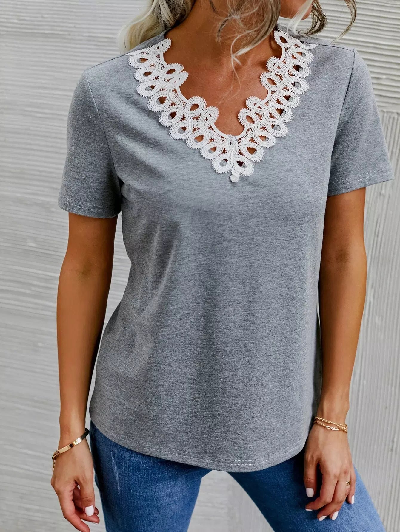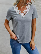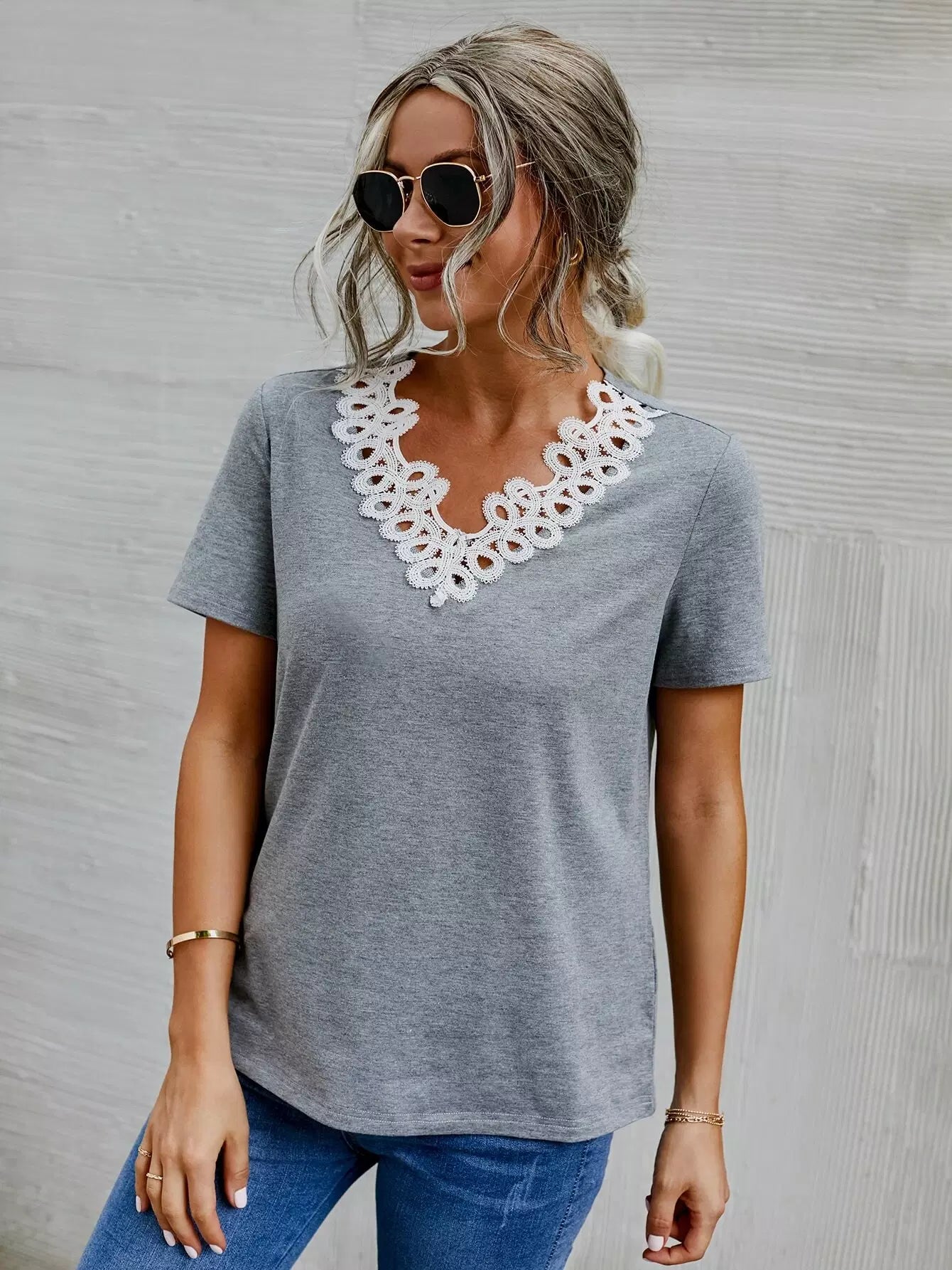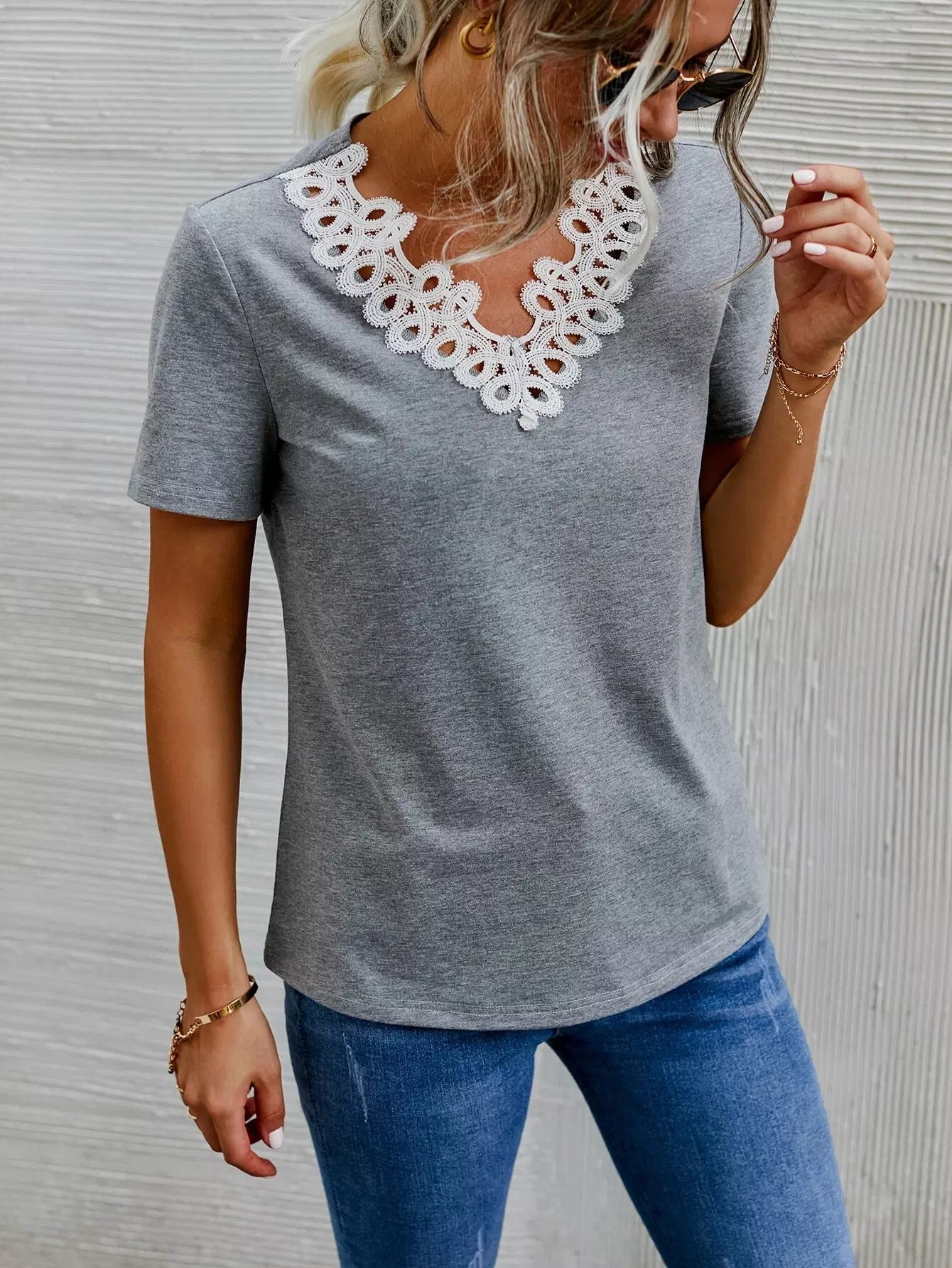 تي شيرت بأكمام قصيرة من الدانتيل المتباين
