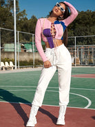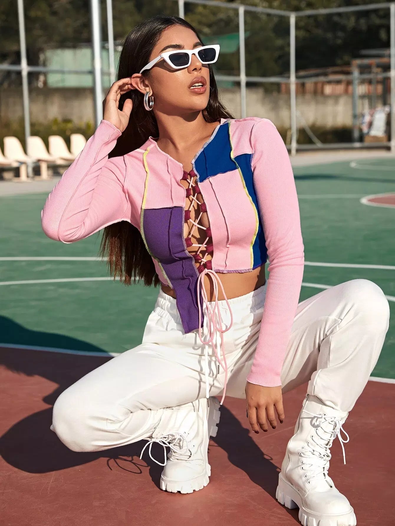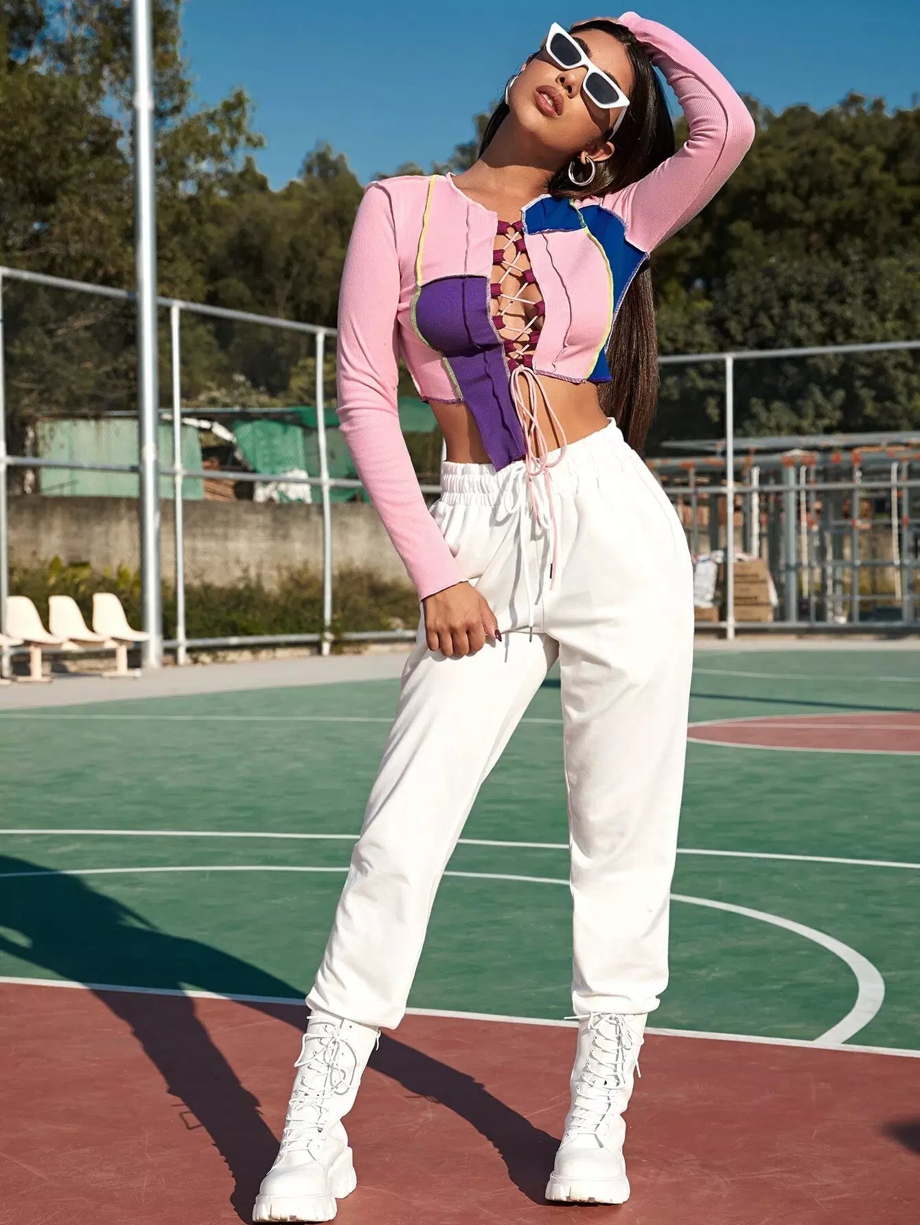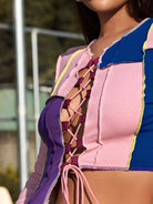 بلوزة ملونة برباط وخياطة متباينة