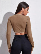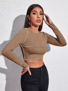 النساء - تي شيرت قصير بخياطة علوية متباينة