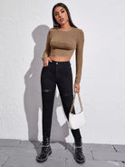 تي شيرت قصير قصير بخياطة بلون مغاير من الأعلى