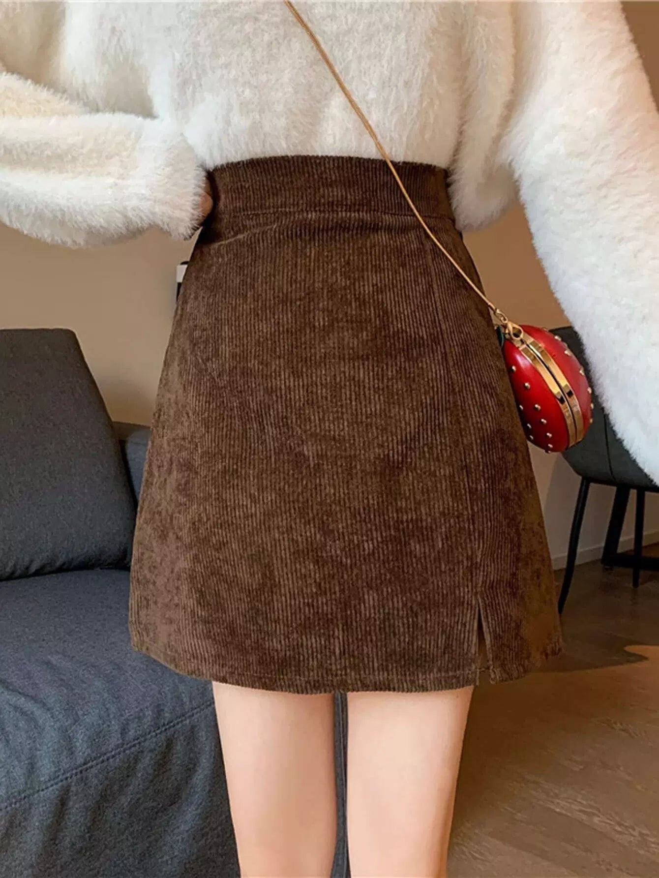 تنورة سروال قصير مشقوق الحاشية بسحاب من الخلف