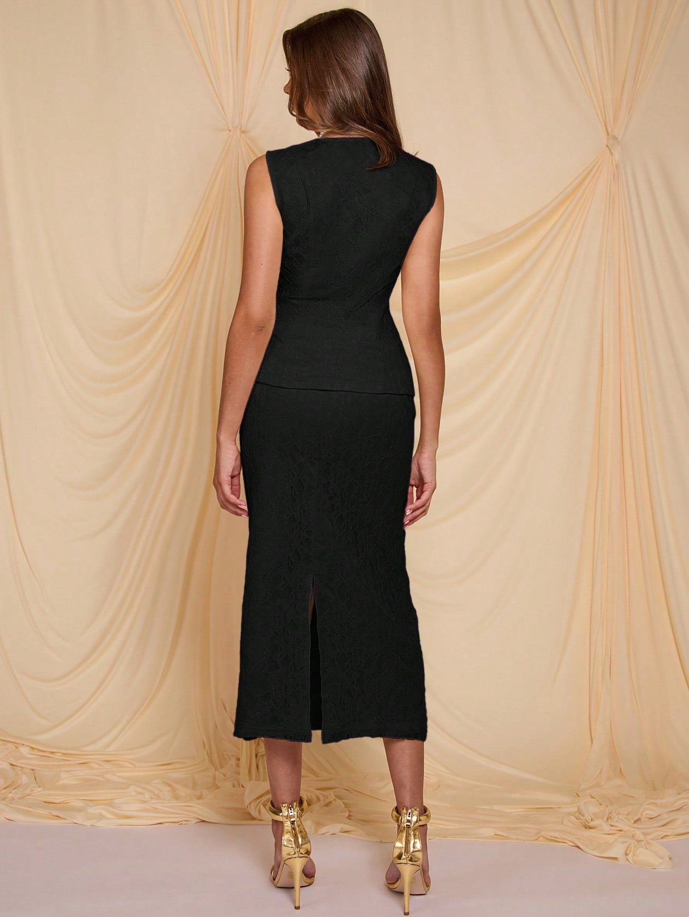 COSMINA 2 Pieces Elegant Fitted Women's Cream Color Lace Set, Spring/Summer