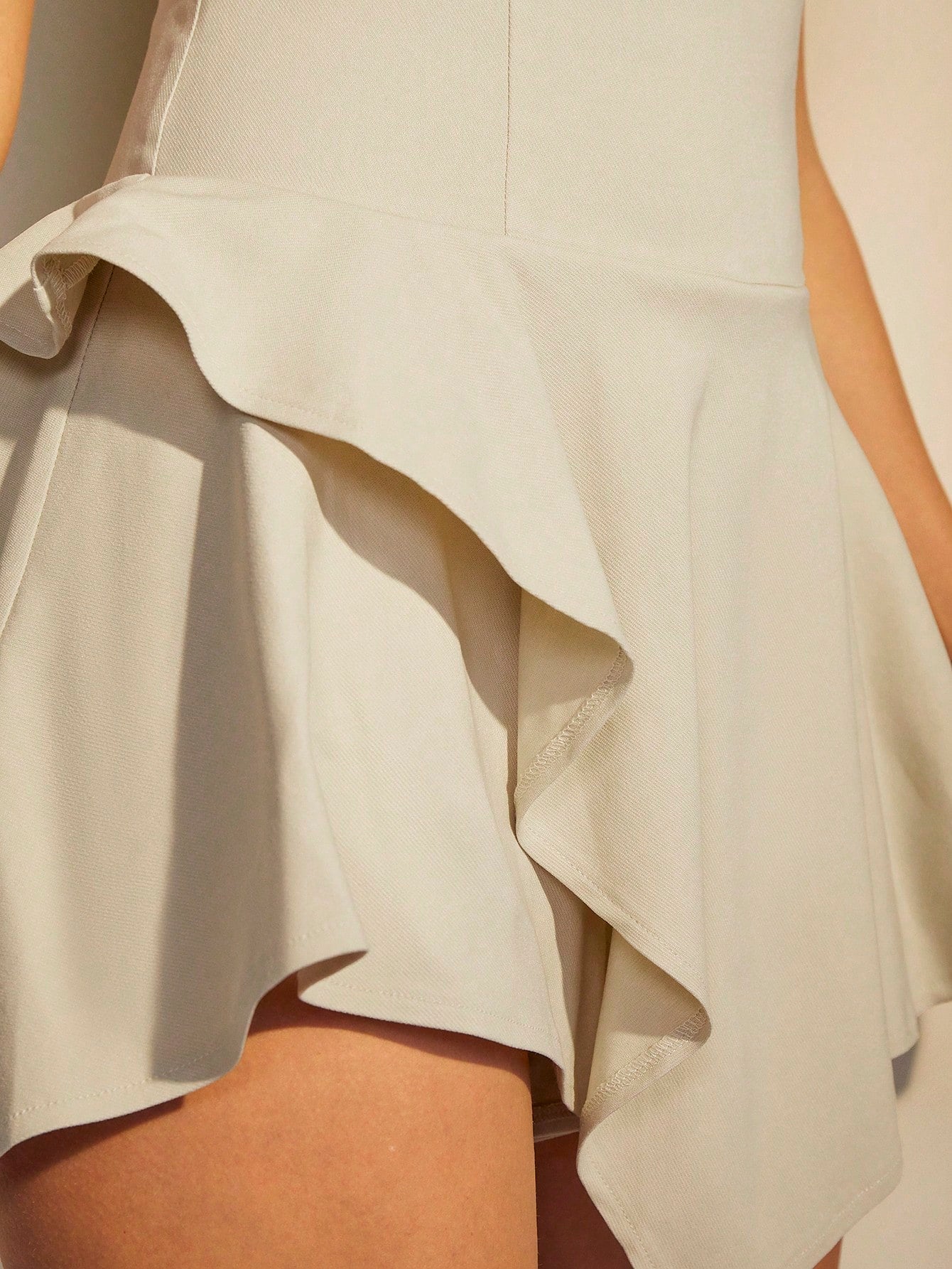 COSMINA Khaki Women's Round Neck Puff Sleeve Ruffle Hem Romper