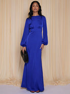 COSMINA Modest Women's Solid Color Long Sleeve Simple Slim Fit Elegant Dress