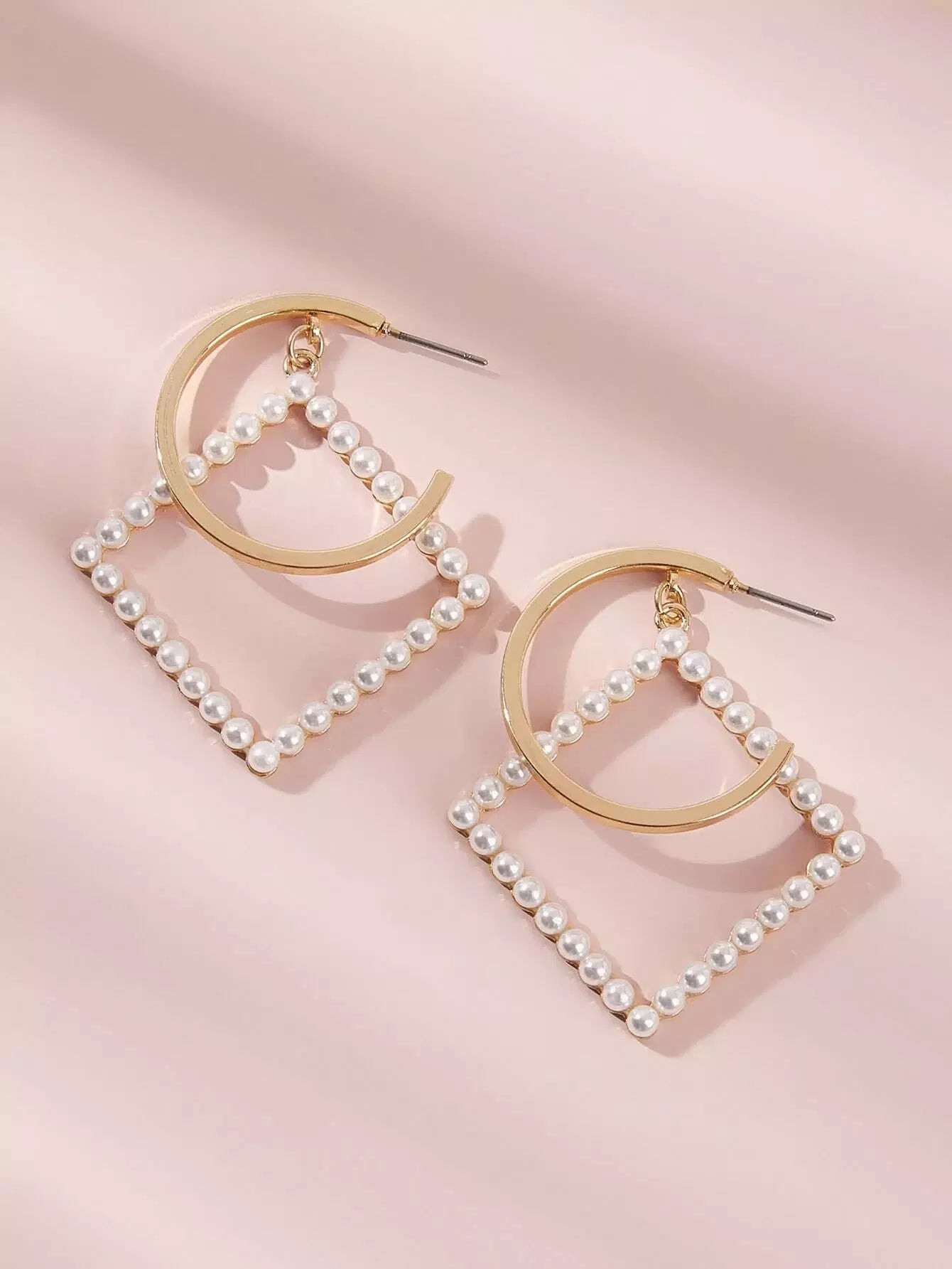 النساء - أقراط متدلية هندسية من اللؤلؤ الصناعي مكونة من زوج واحد