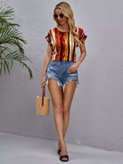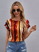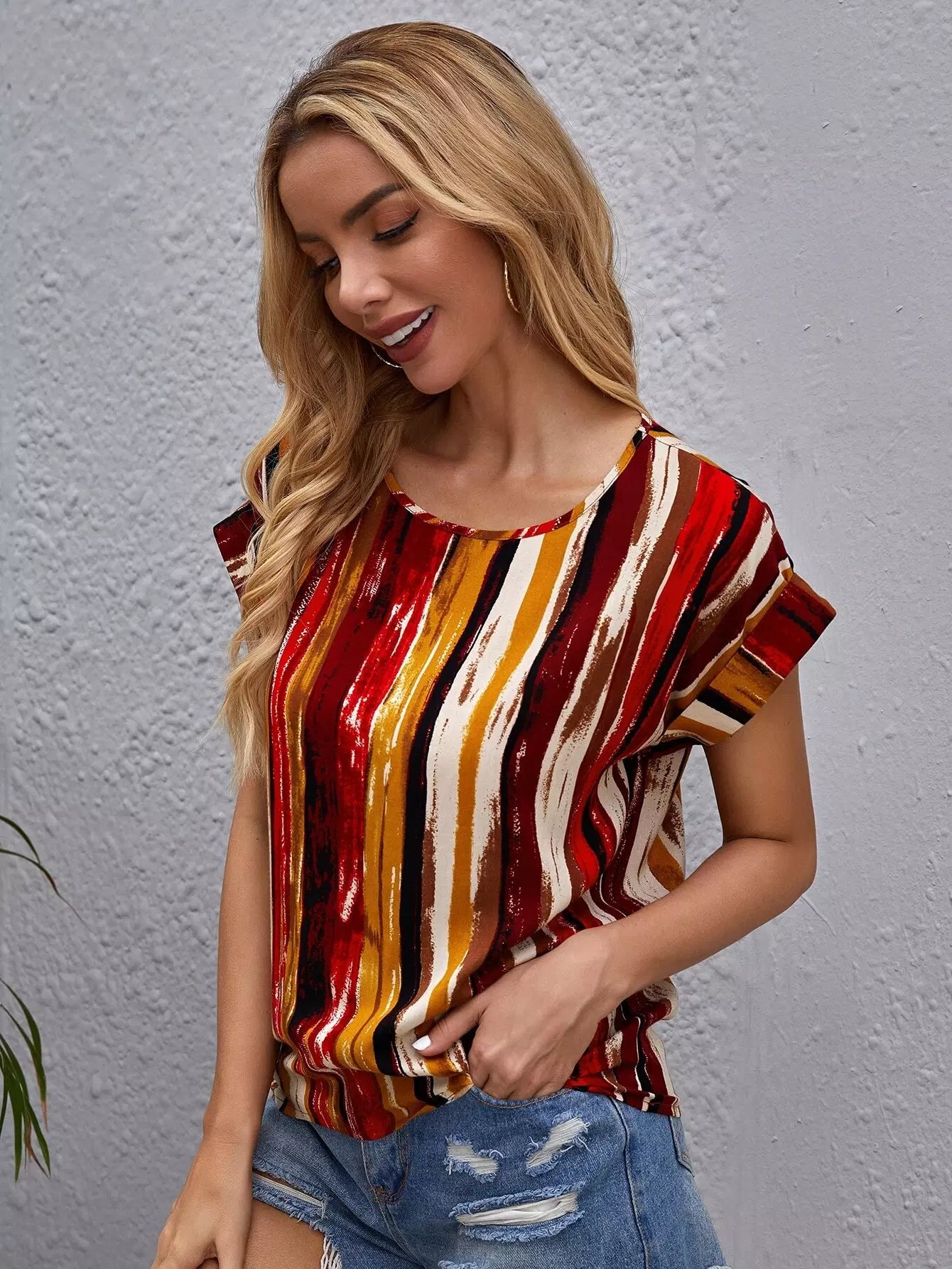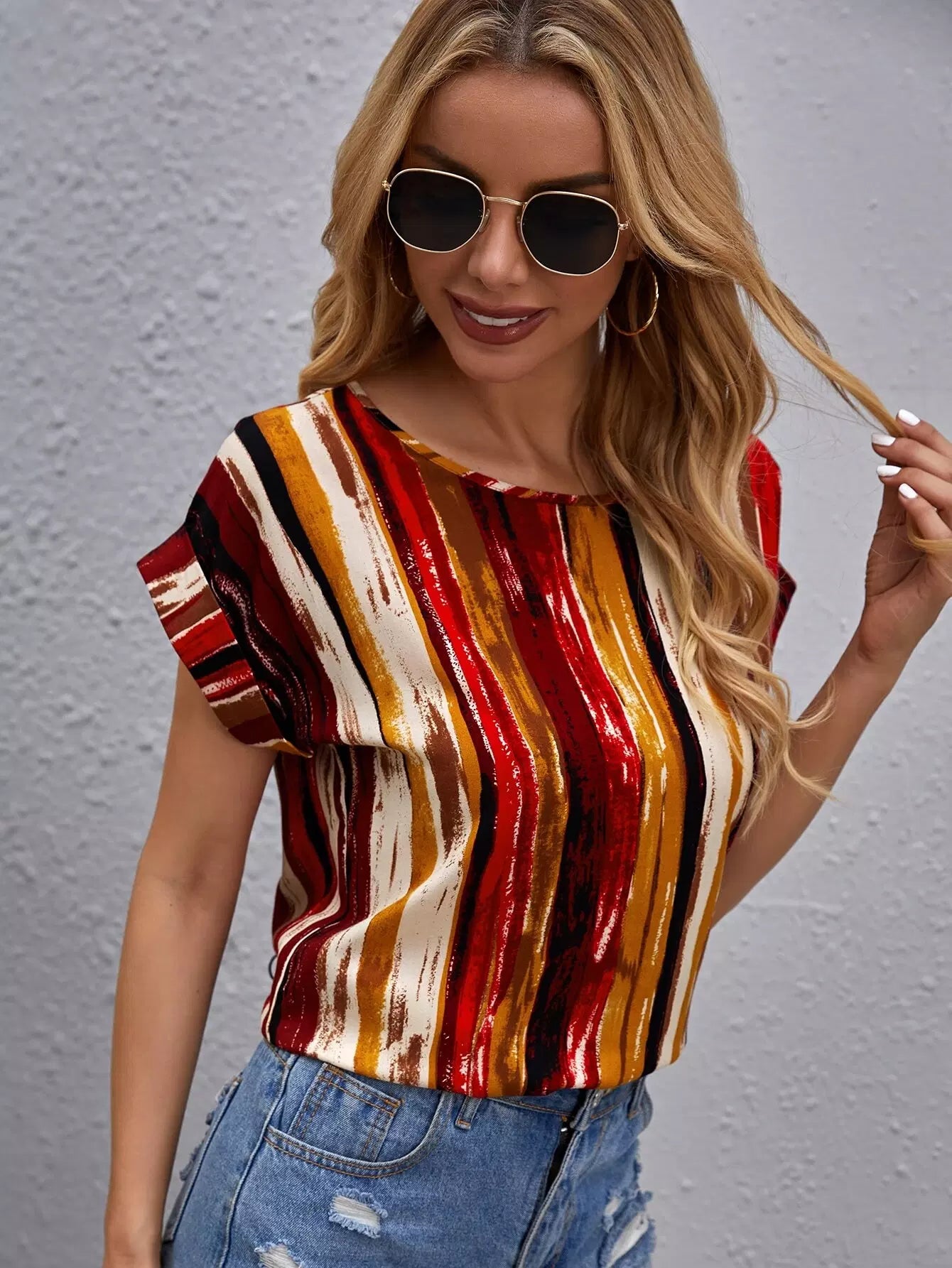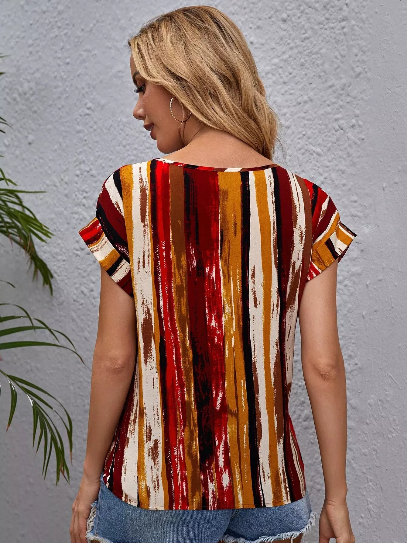 بلوزة بأكمام بأكمام مكفوفة ملونة
