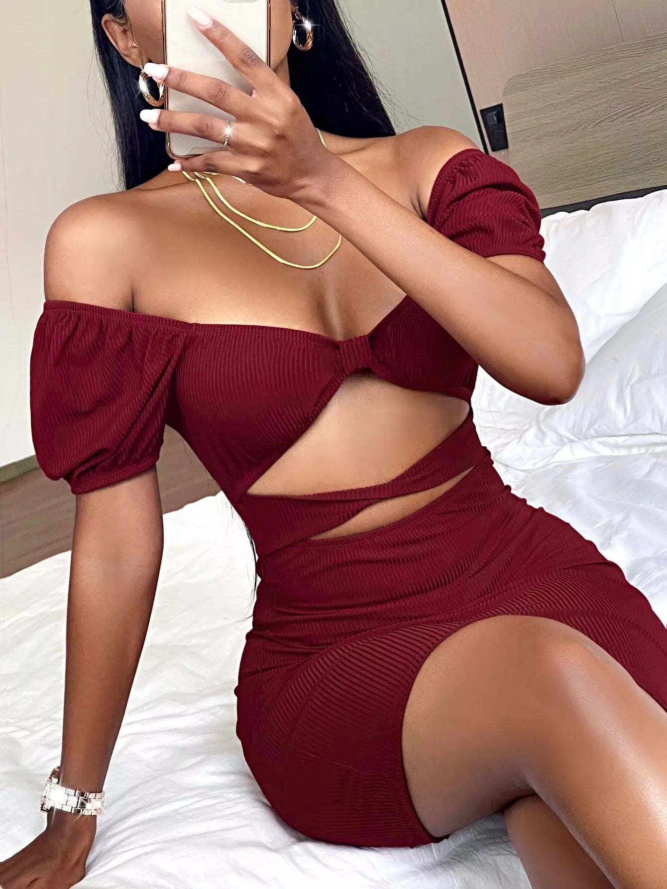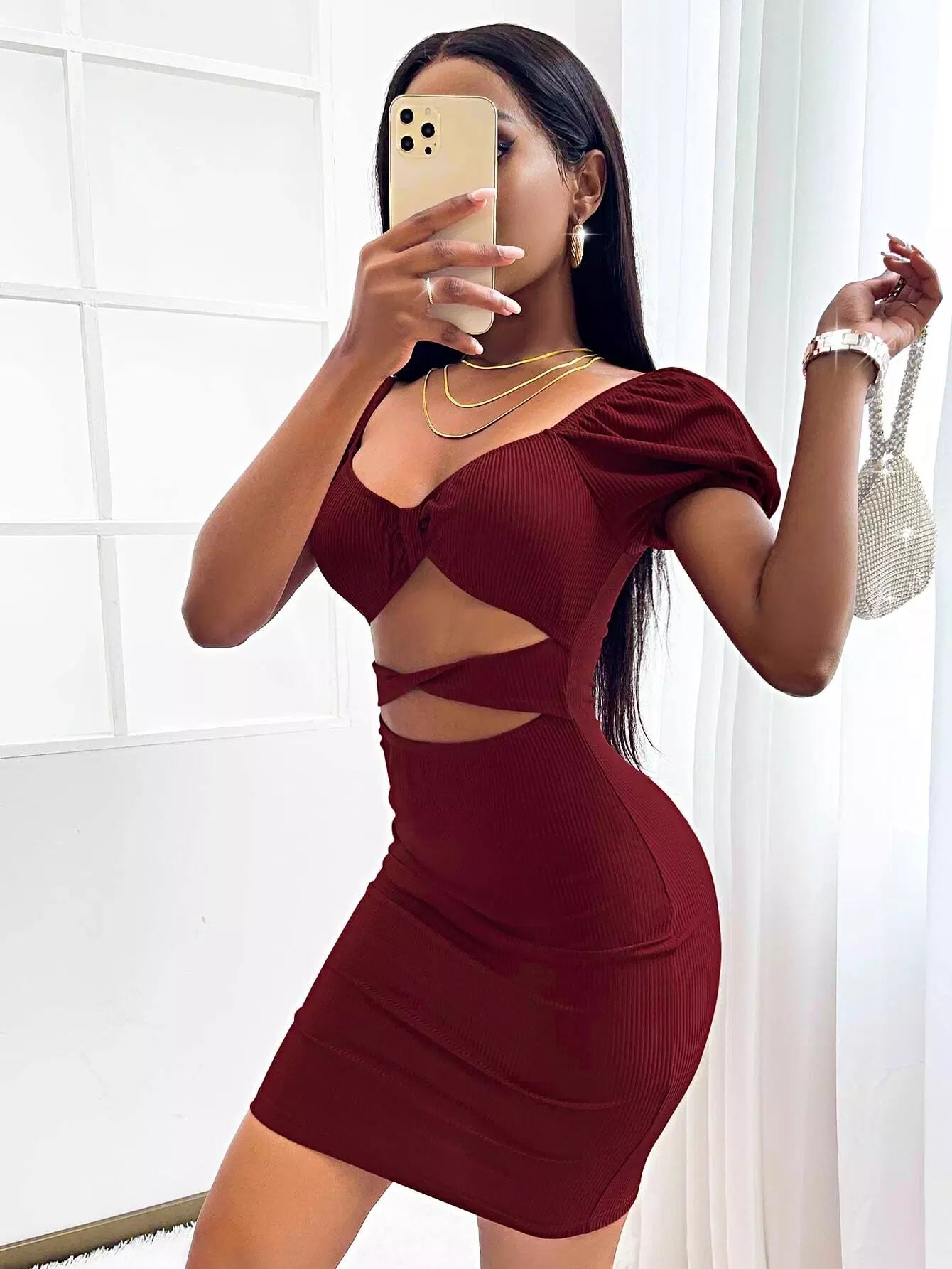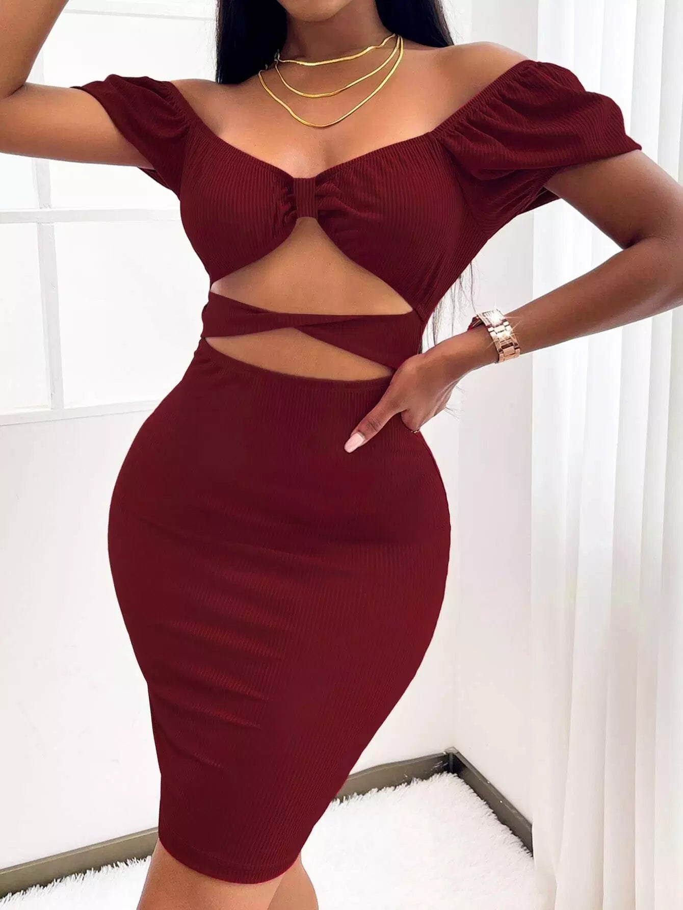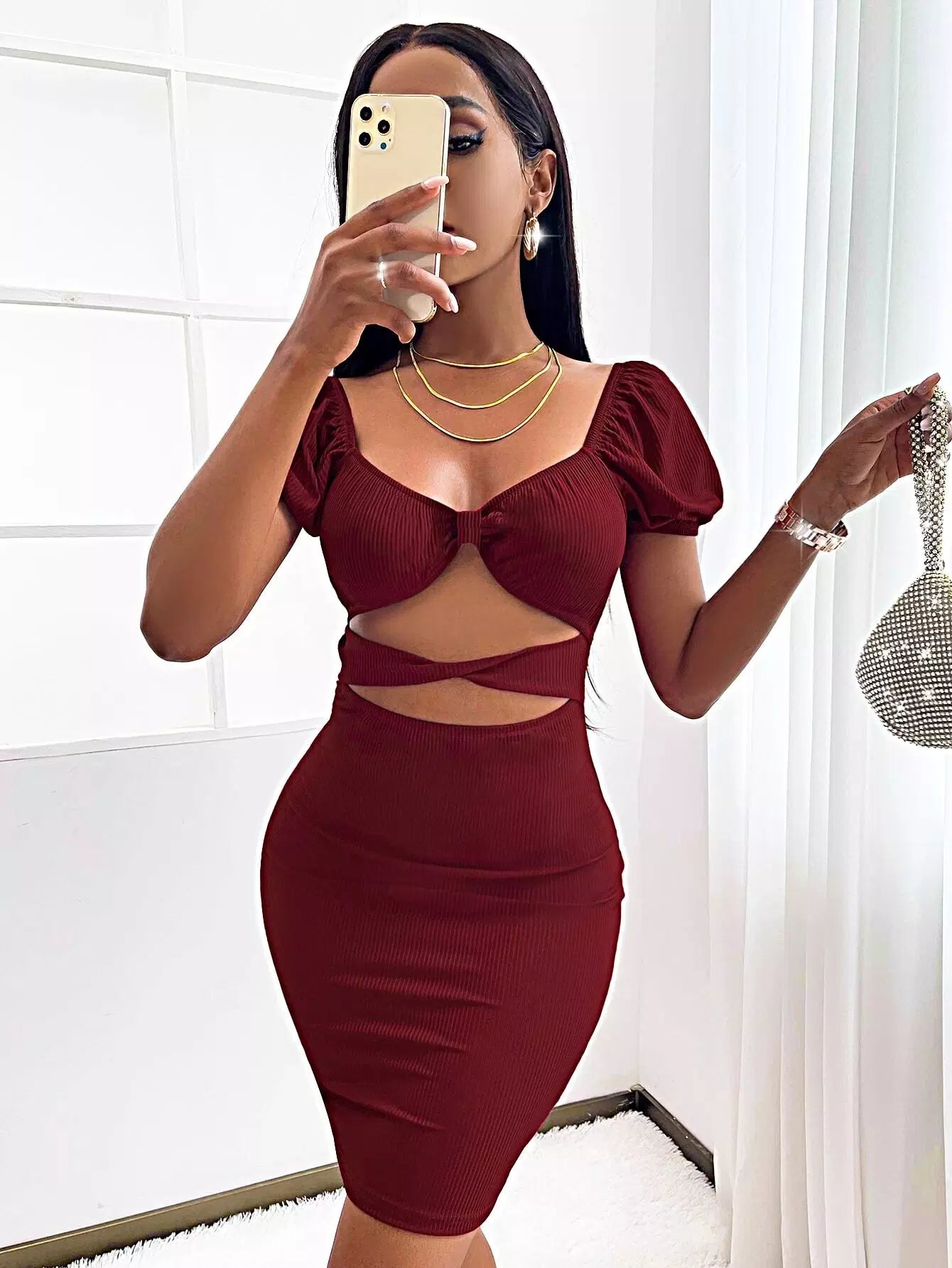 فستان بوديكون بأكمام منفوشة مقطوعة