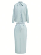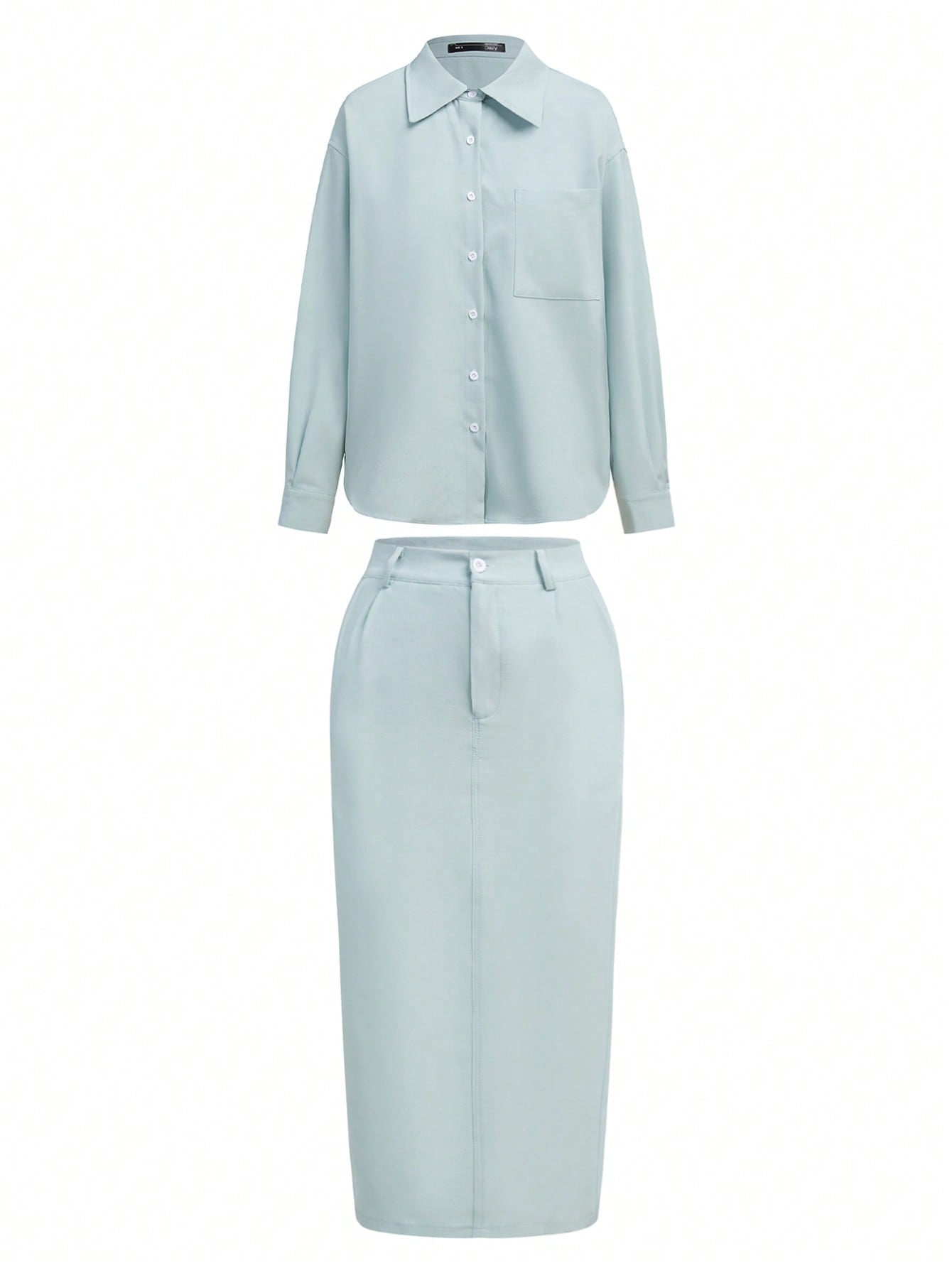 DAZY 2pcs/Set Solid Color Shirt And Skirt Suit, Casual & Commute