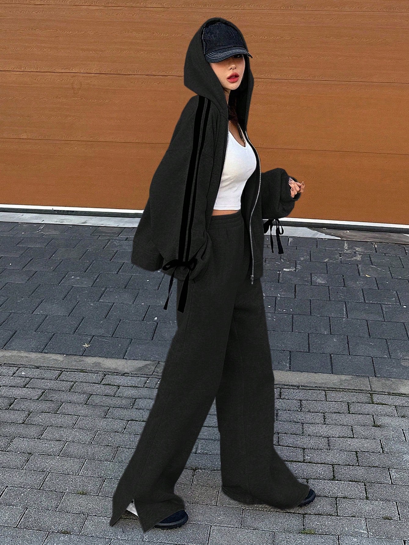 DAZY 2pcs/Set Women Hooded Sweatshirt And Wide Leg Pants,Fall Clothes