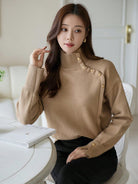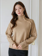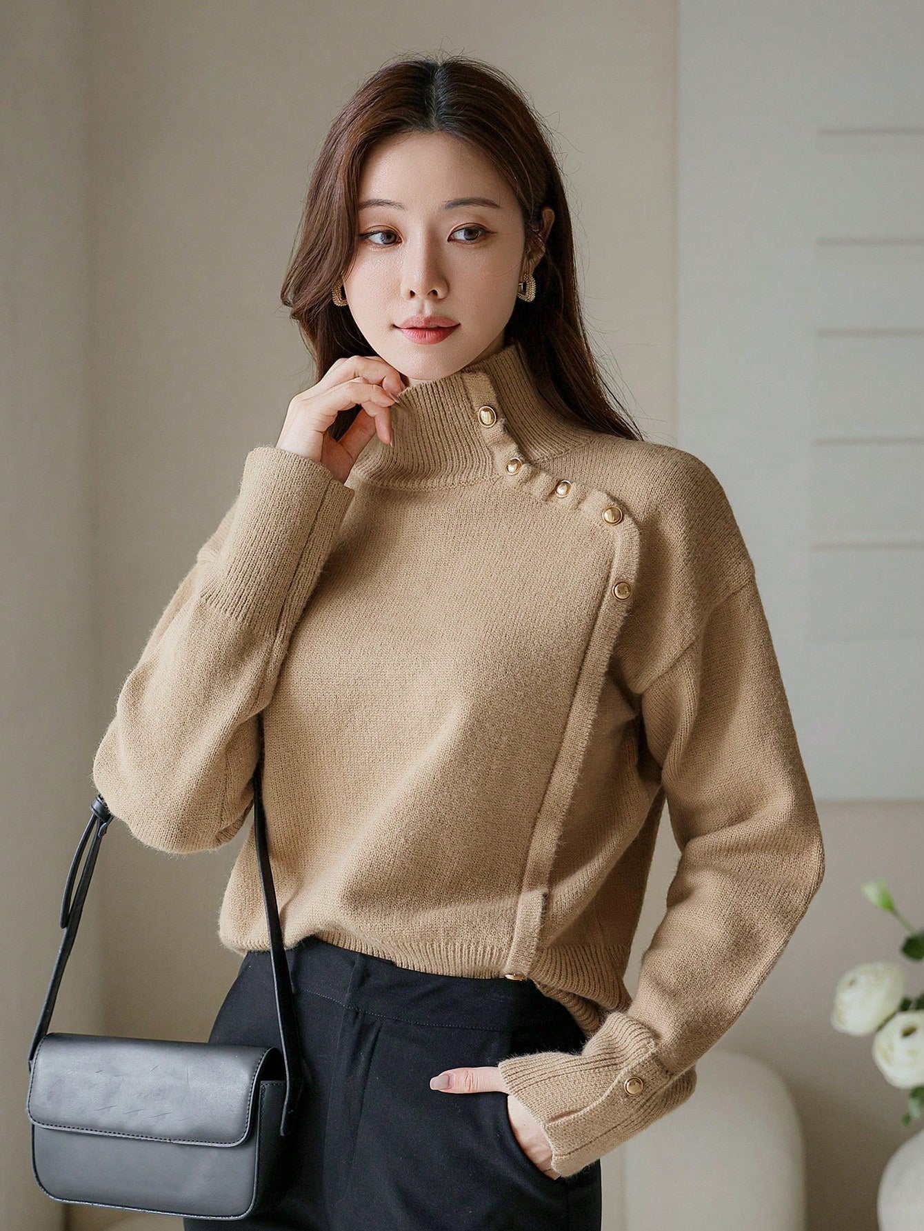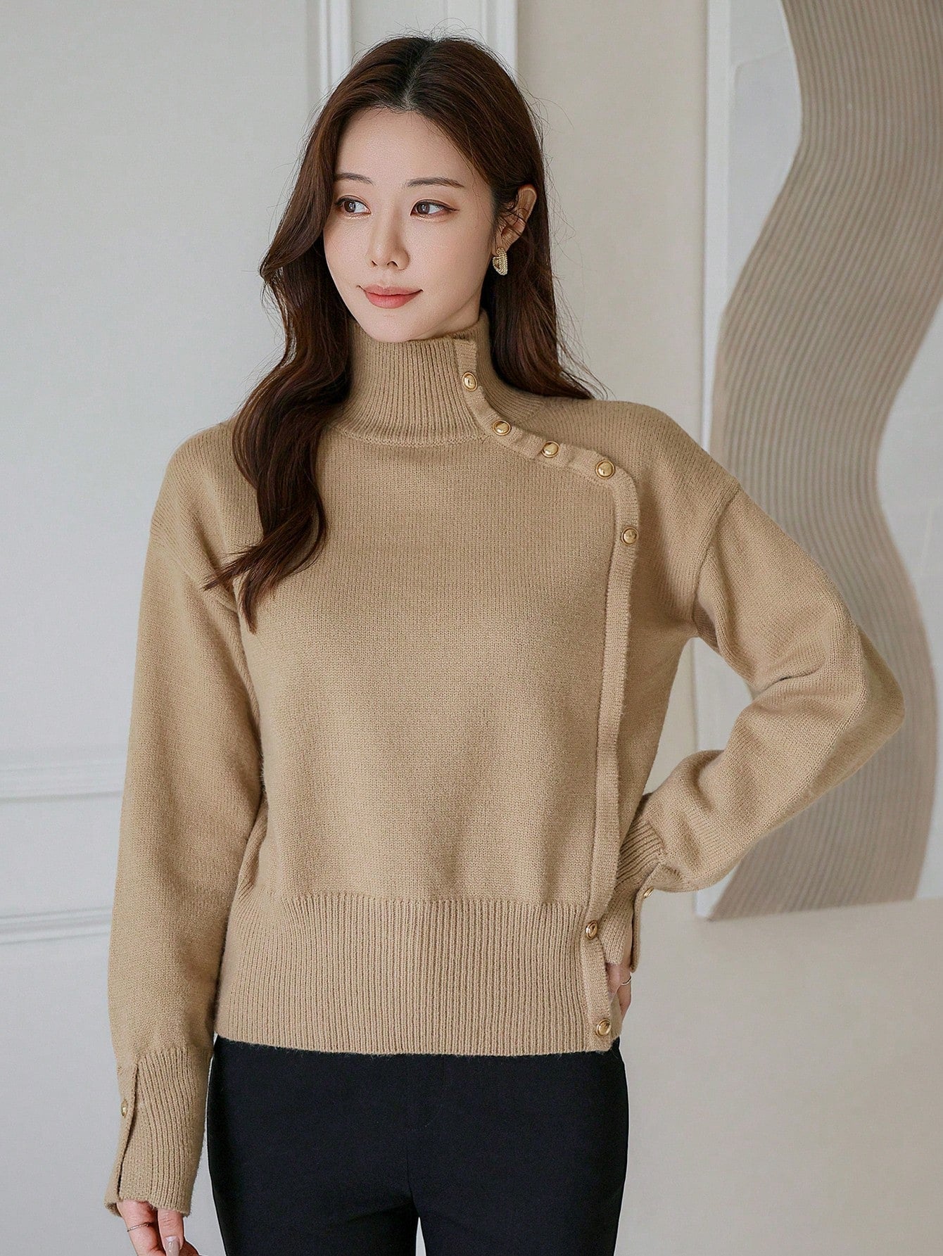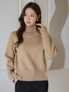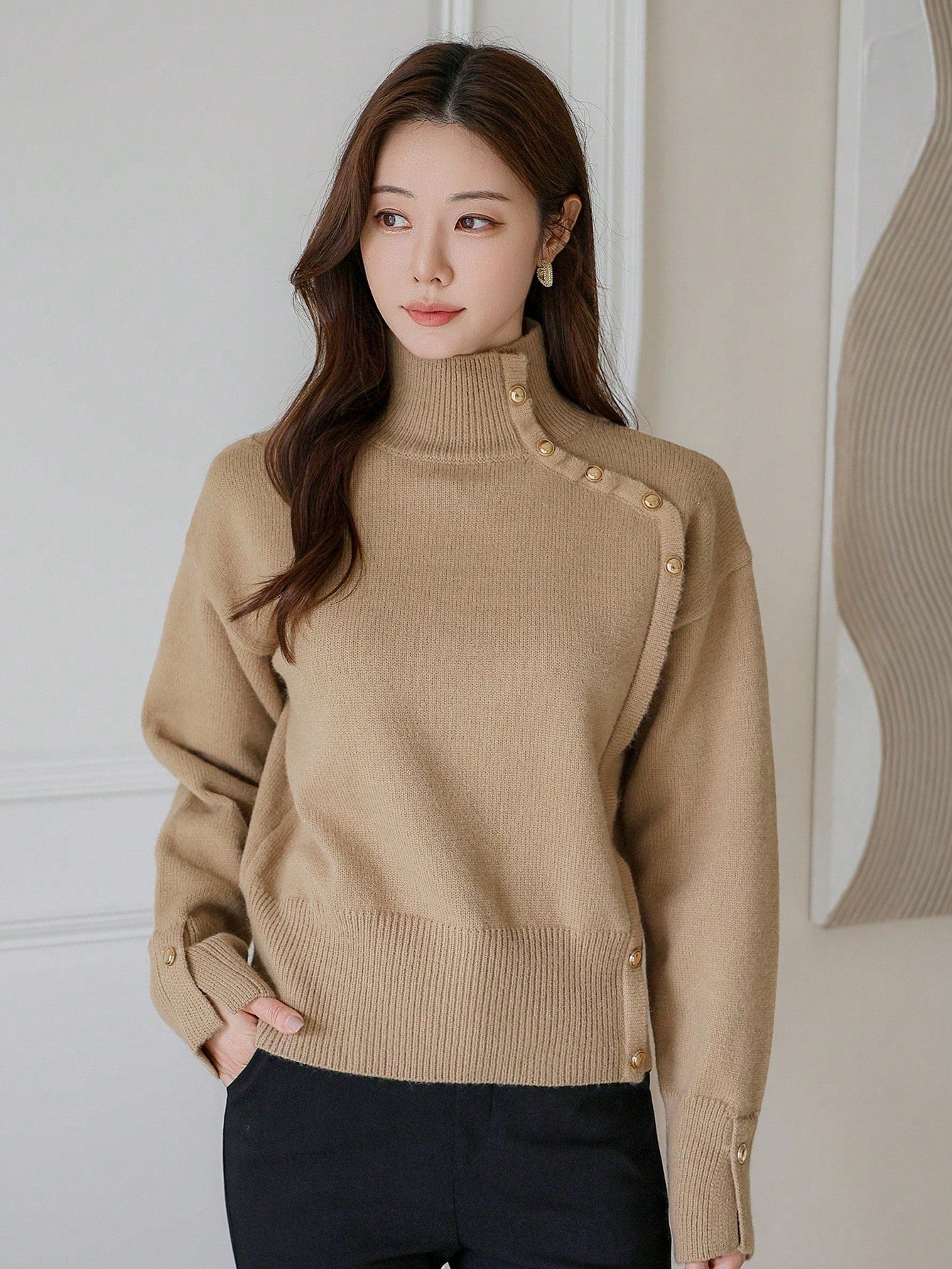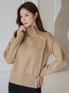 women DAZY Solid Color Asymmetric High Neck Loose Women Sweater