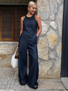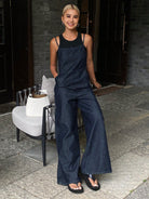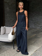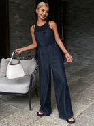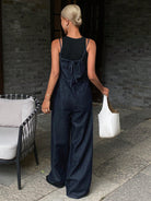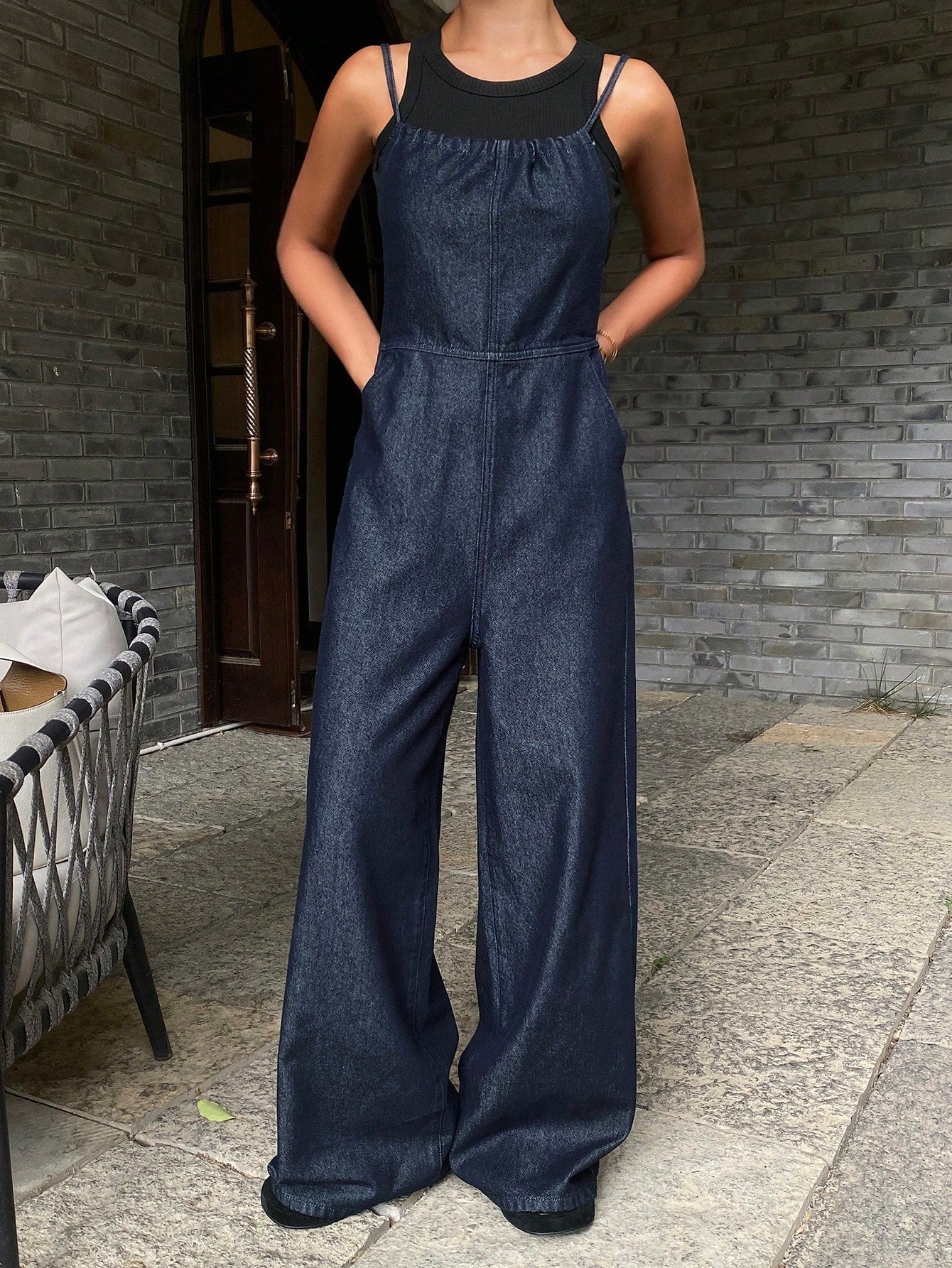 DAZY Western Style Solid Color Drawstring Waist Casual Vacation Women Summer Denim Jumpsuits & Jumpsuits,