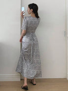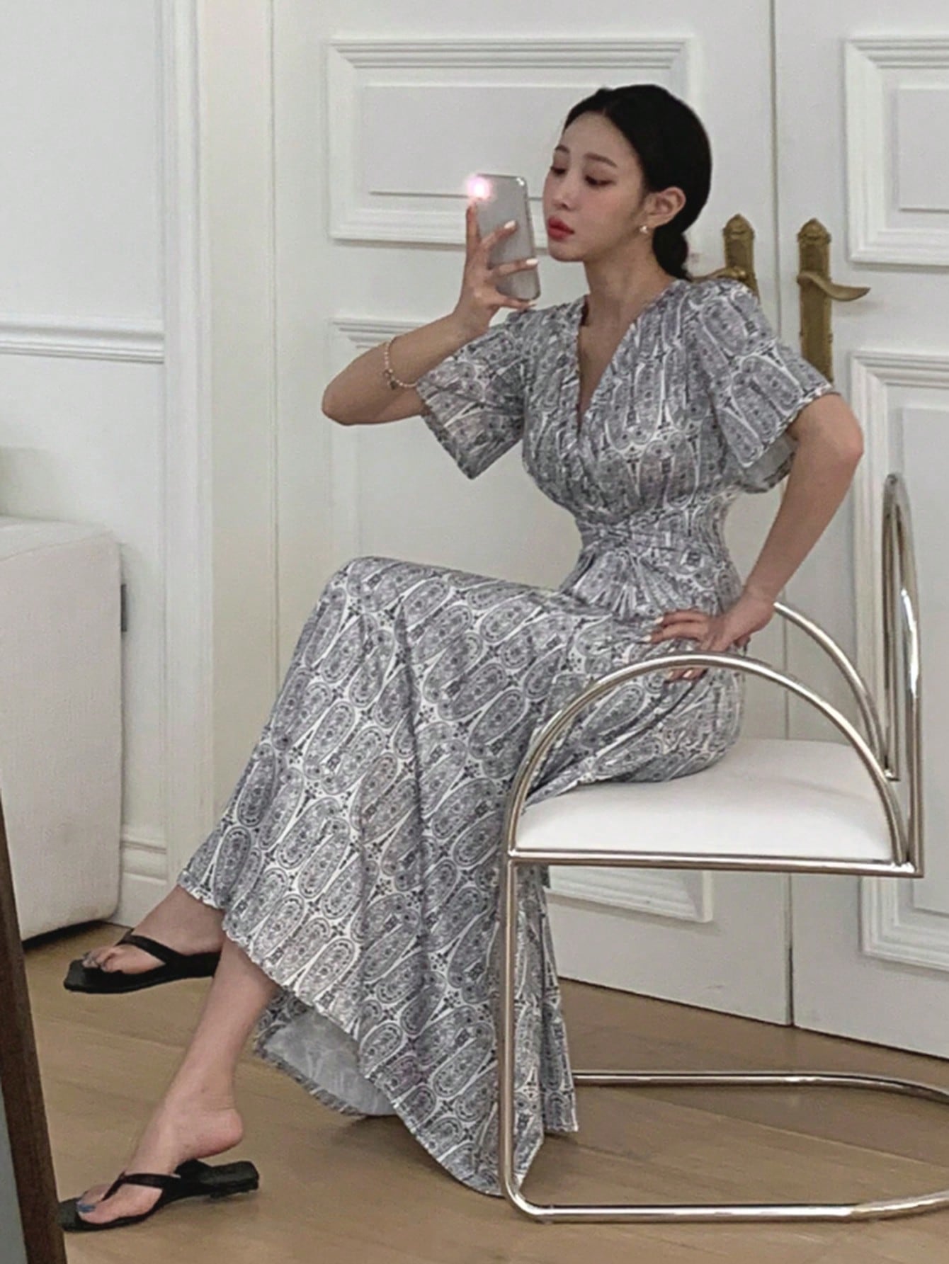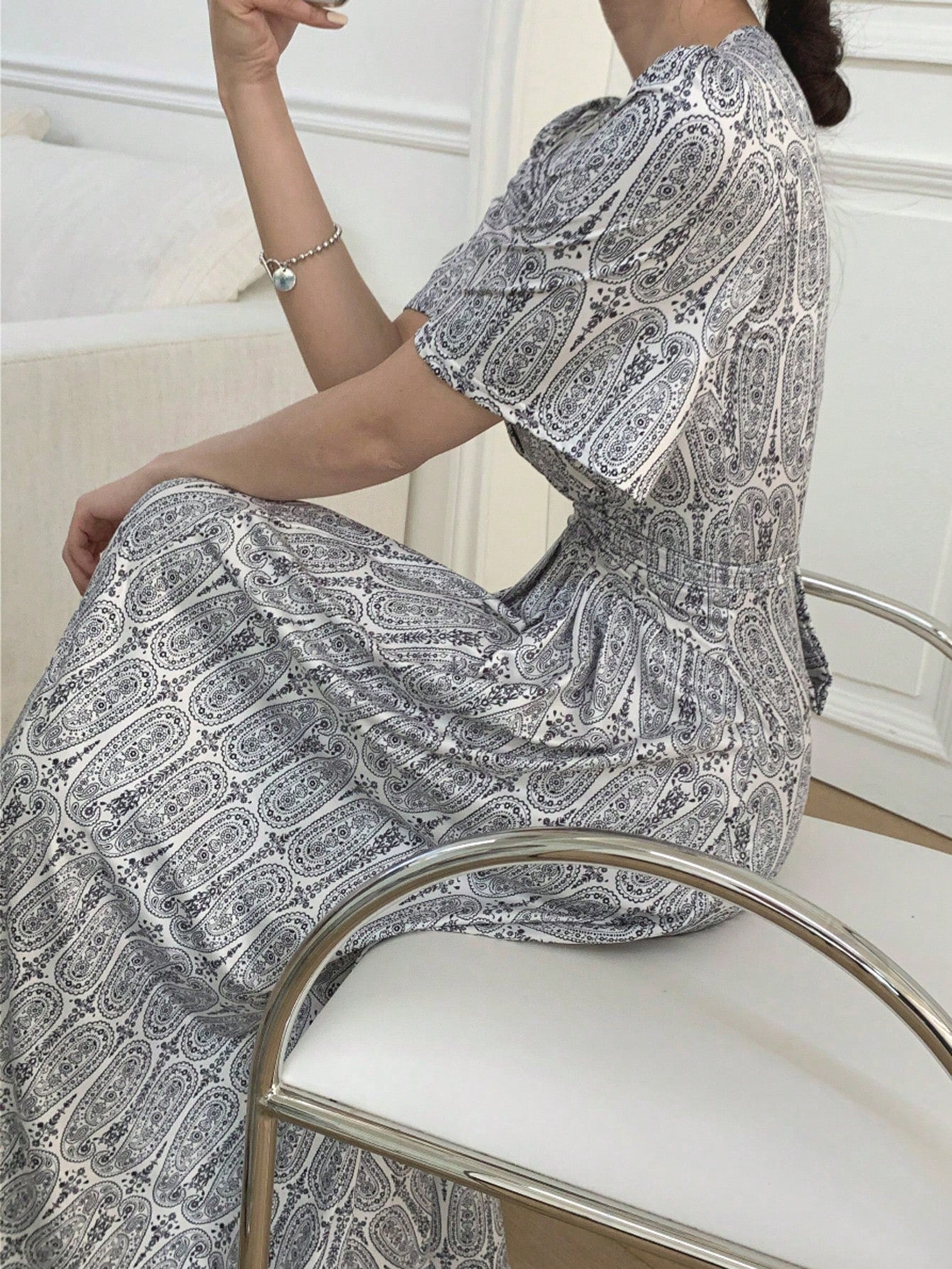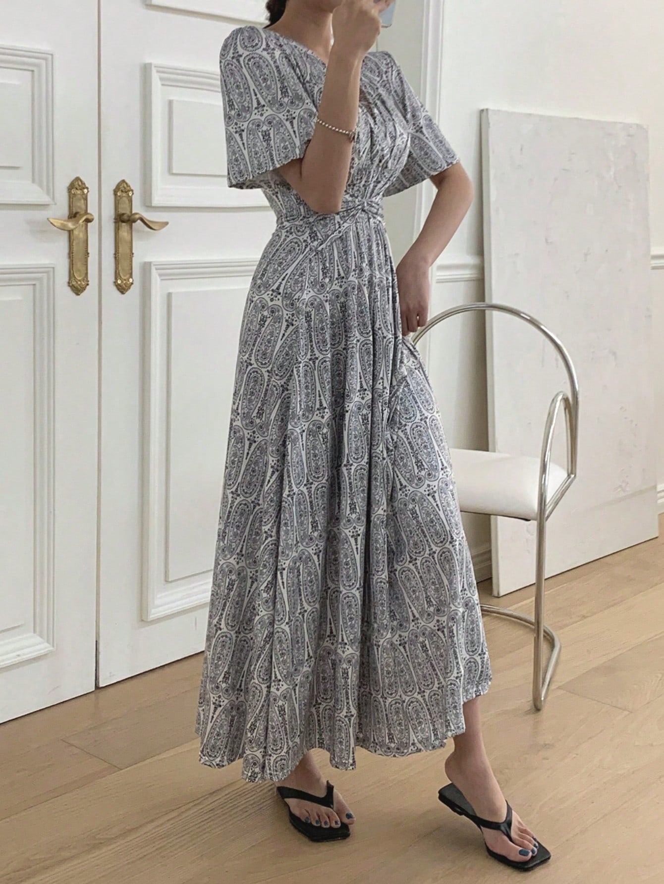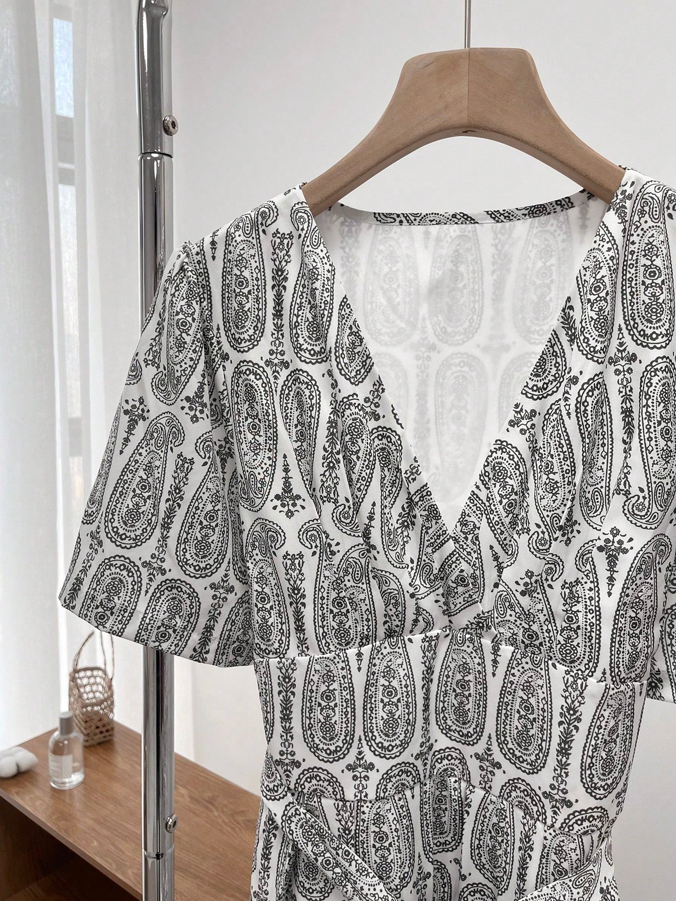 فستان DAZY نسائي بطبعة زهور وفتحة رقبة على شكل حرف V وأكمام قصيرة، مناسب لقضاء إجازة على الشاطئ، ربيع/صيف