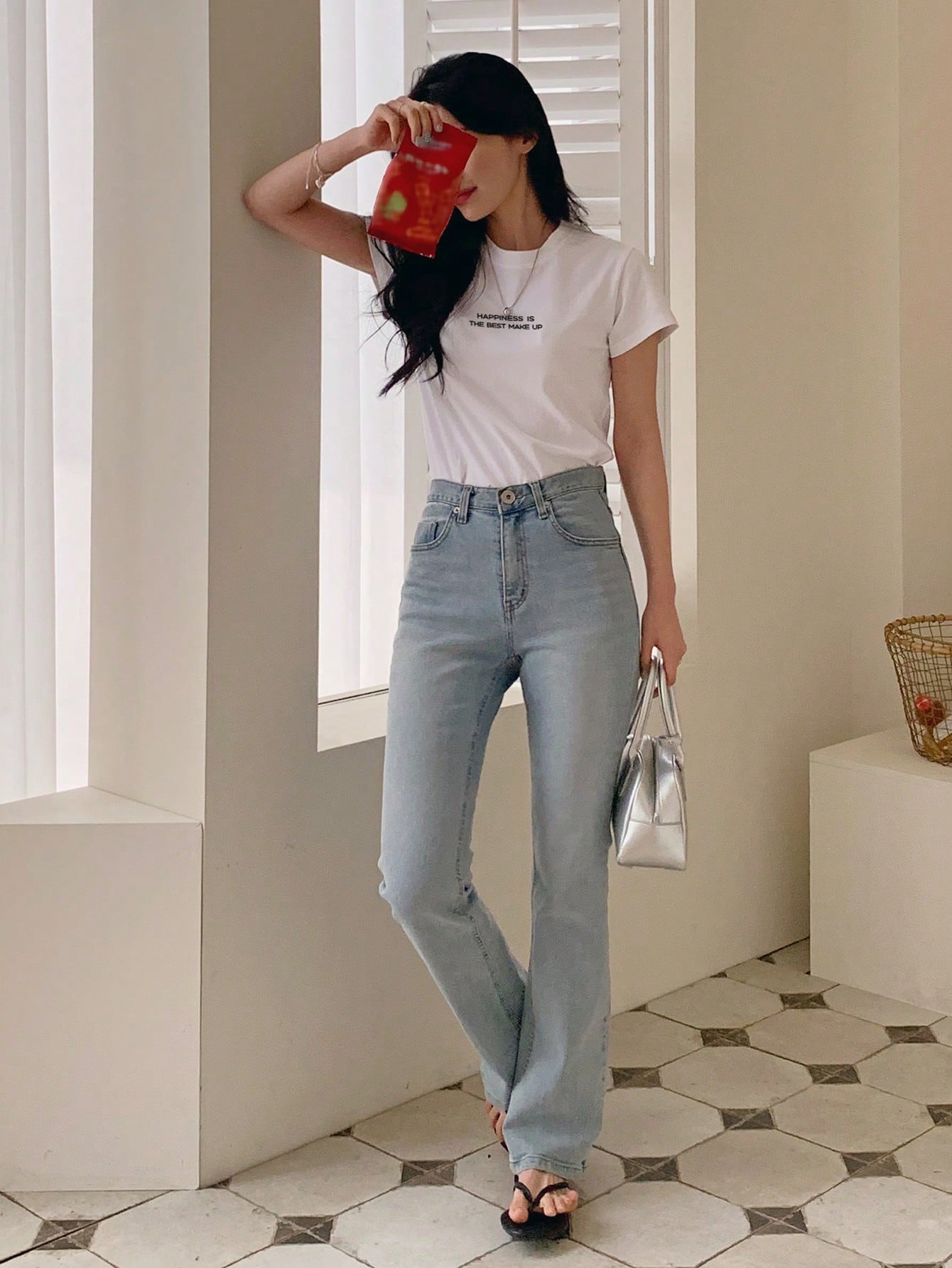 تي شيرت نسائي مطبوع برقبة دائرية من DAZY مع شعار السعادة هي أفضل مكياج صيفي