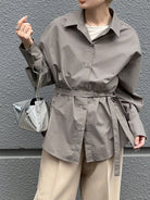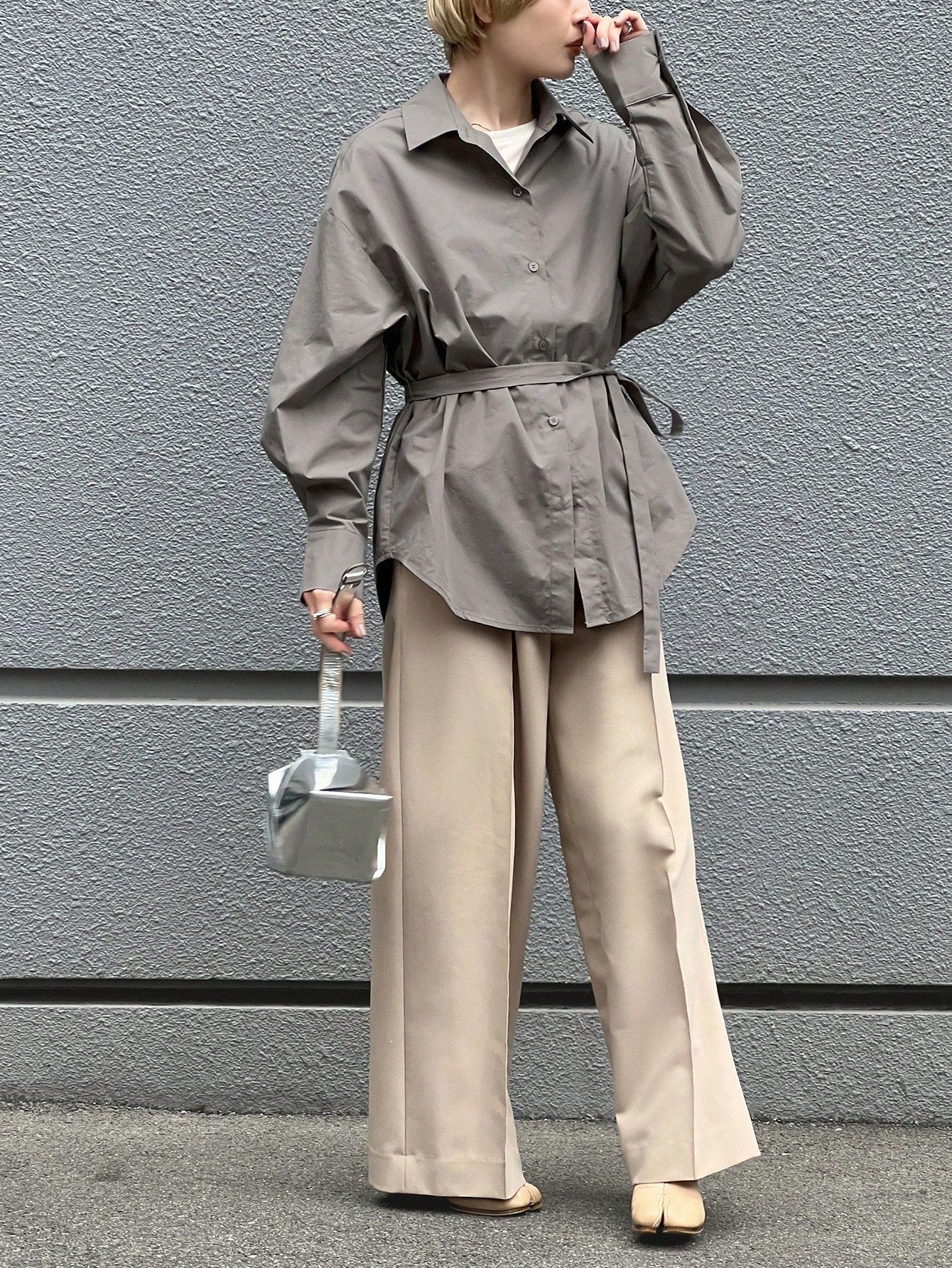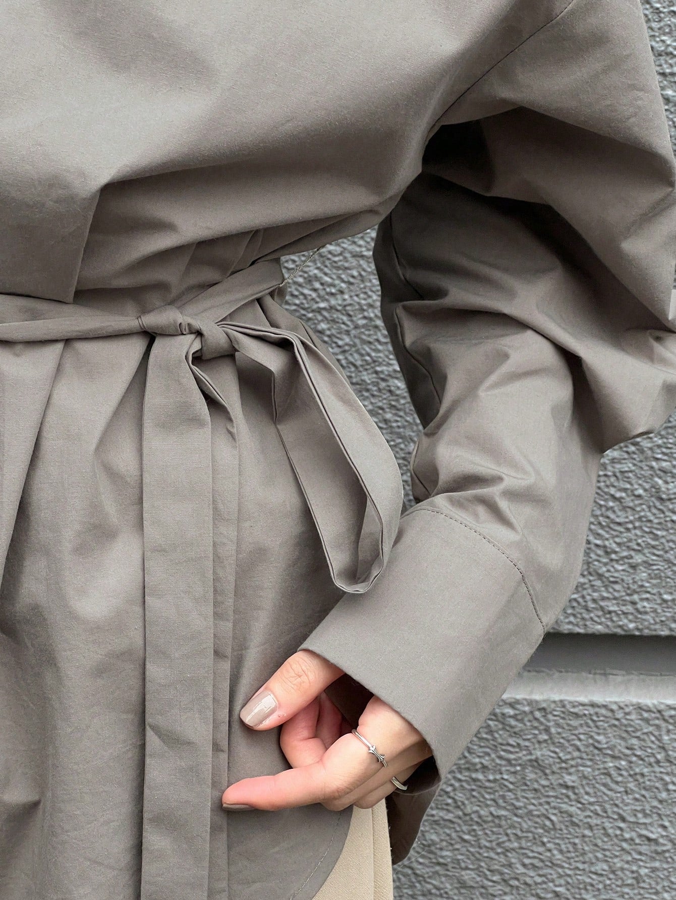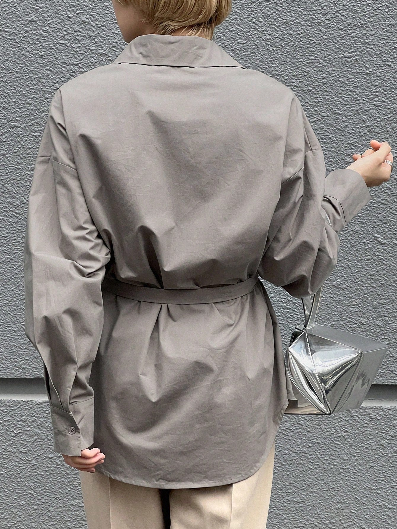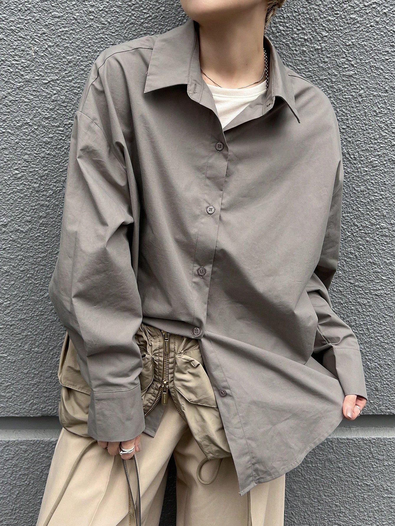 women DAZY Women's Solid Color Drop Shoulder Long Sleeve Single-Breasted Casual Shirt