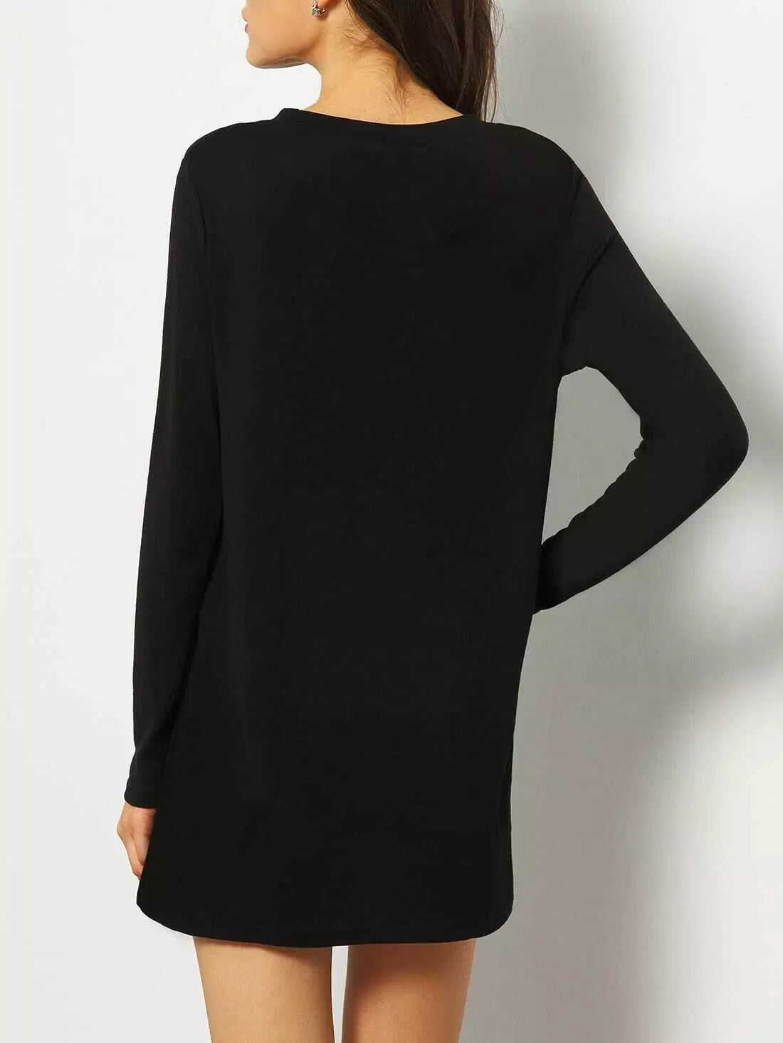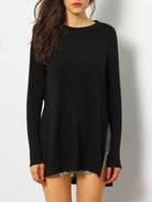 للنساء - تي شيرت طويل بفتحة جانبية وحاشية متدلية