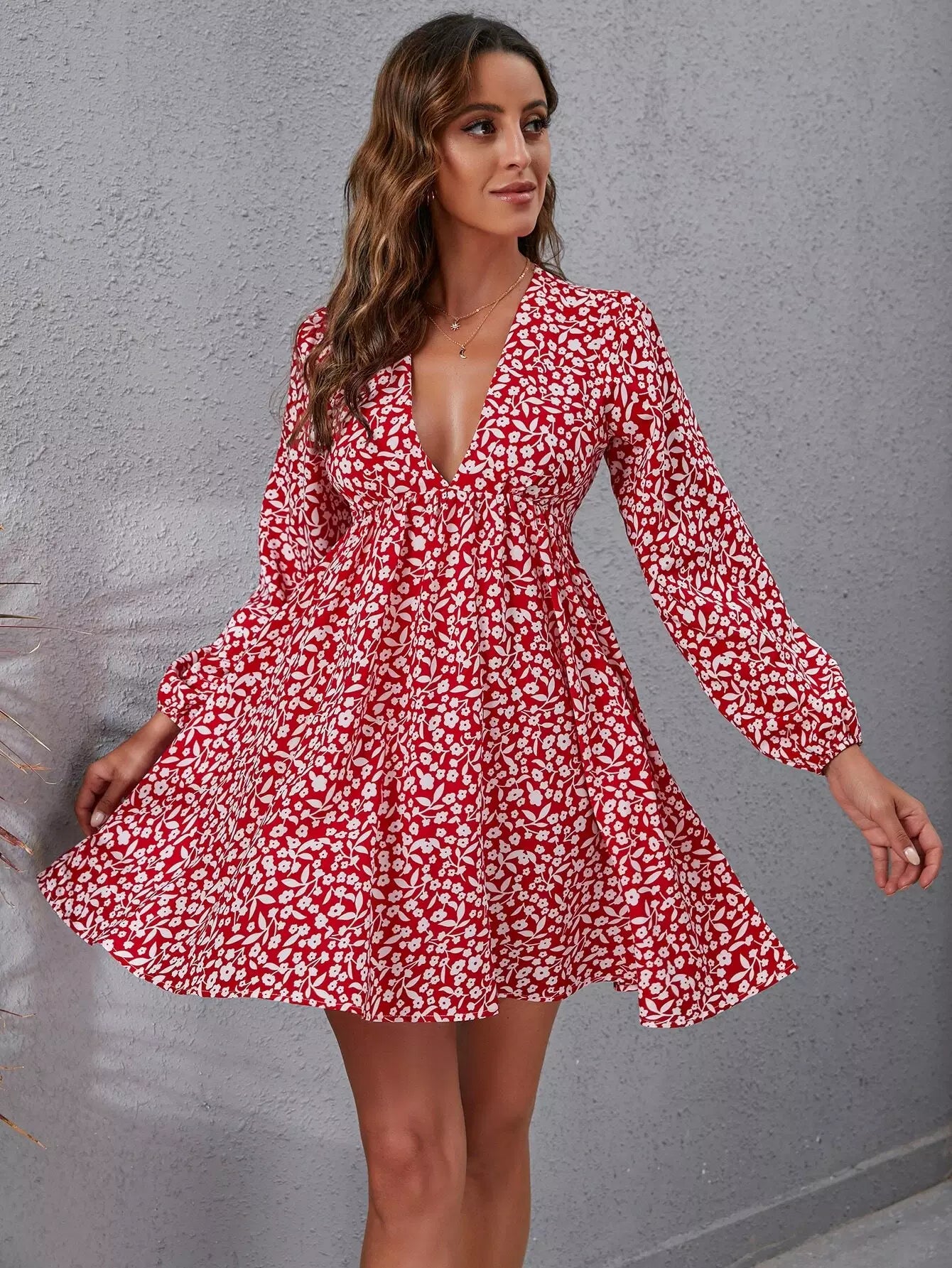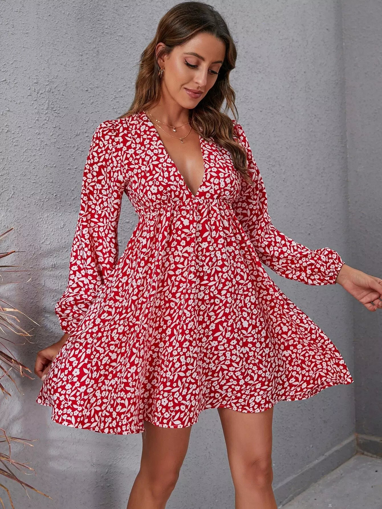 النساء - فستان ديتسي بأكمام واسعة مزهّرة