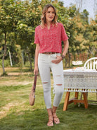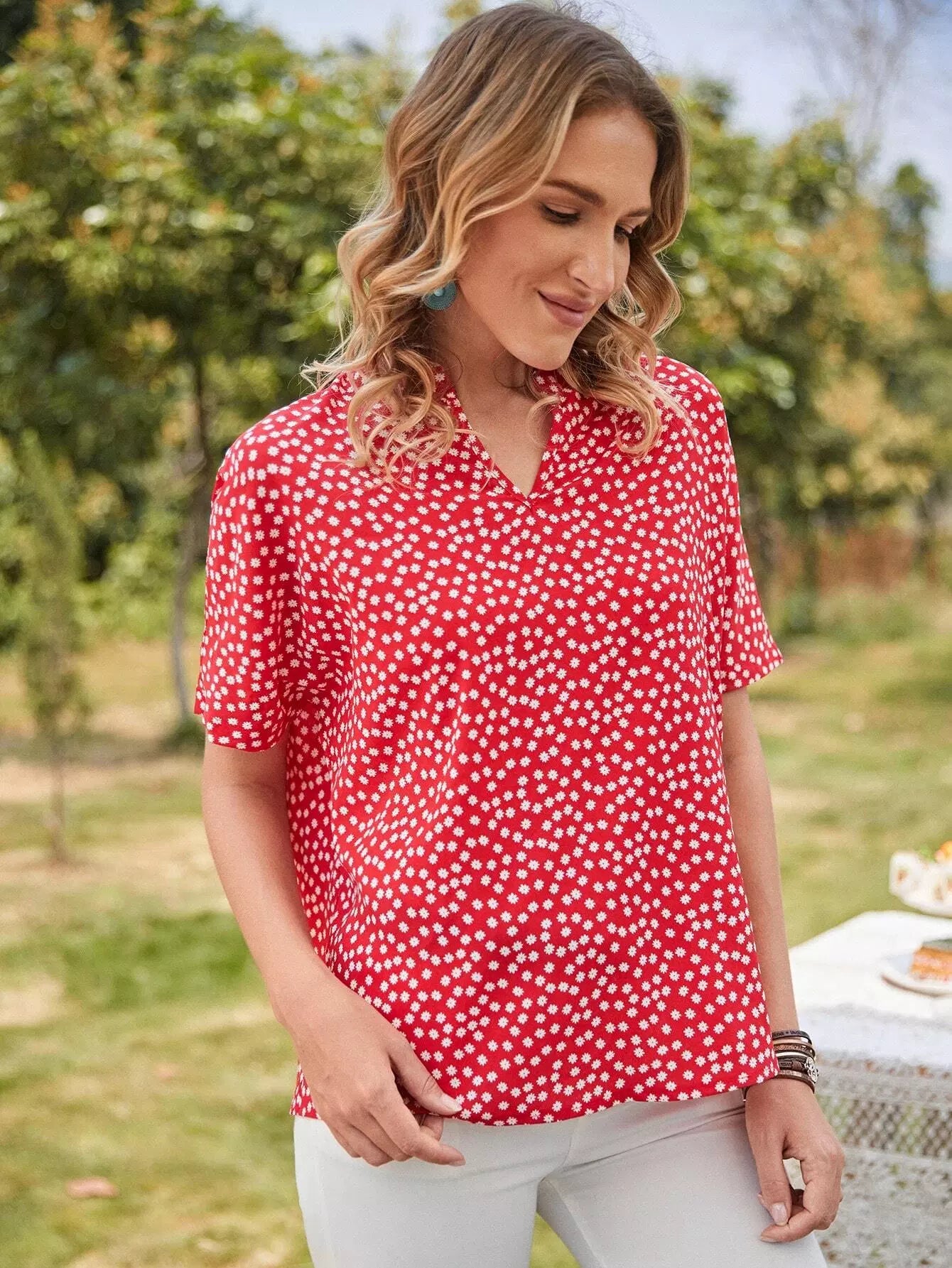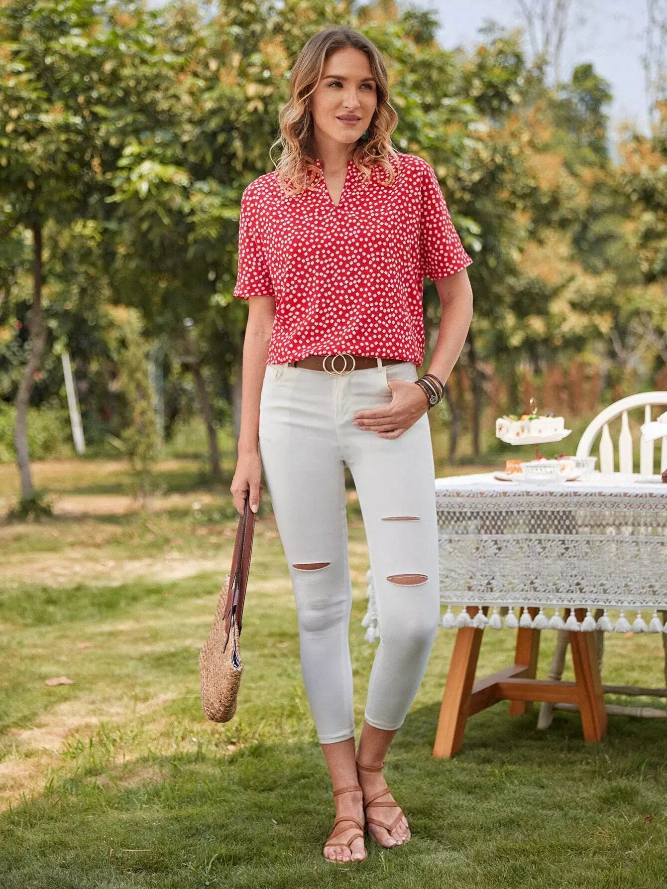 بلوزة ديتسي مزينة بالورود برقبة مزينة بالورود
