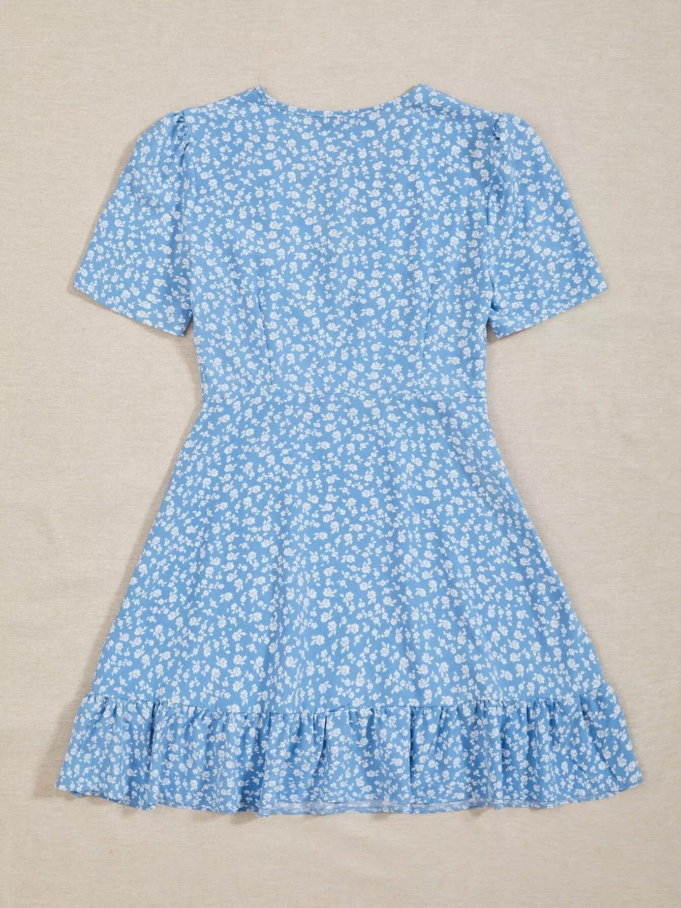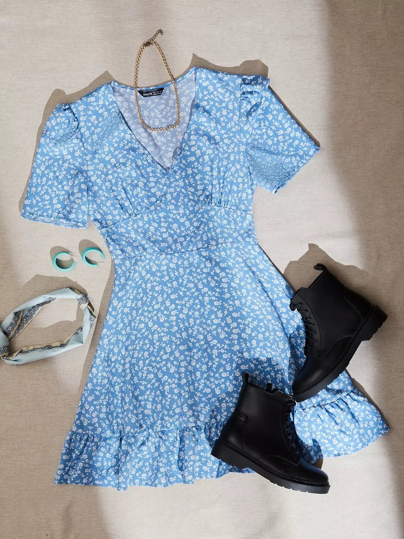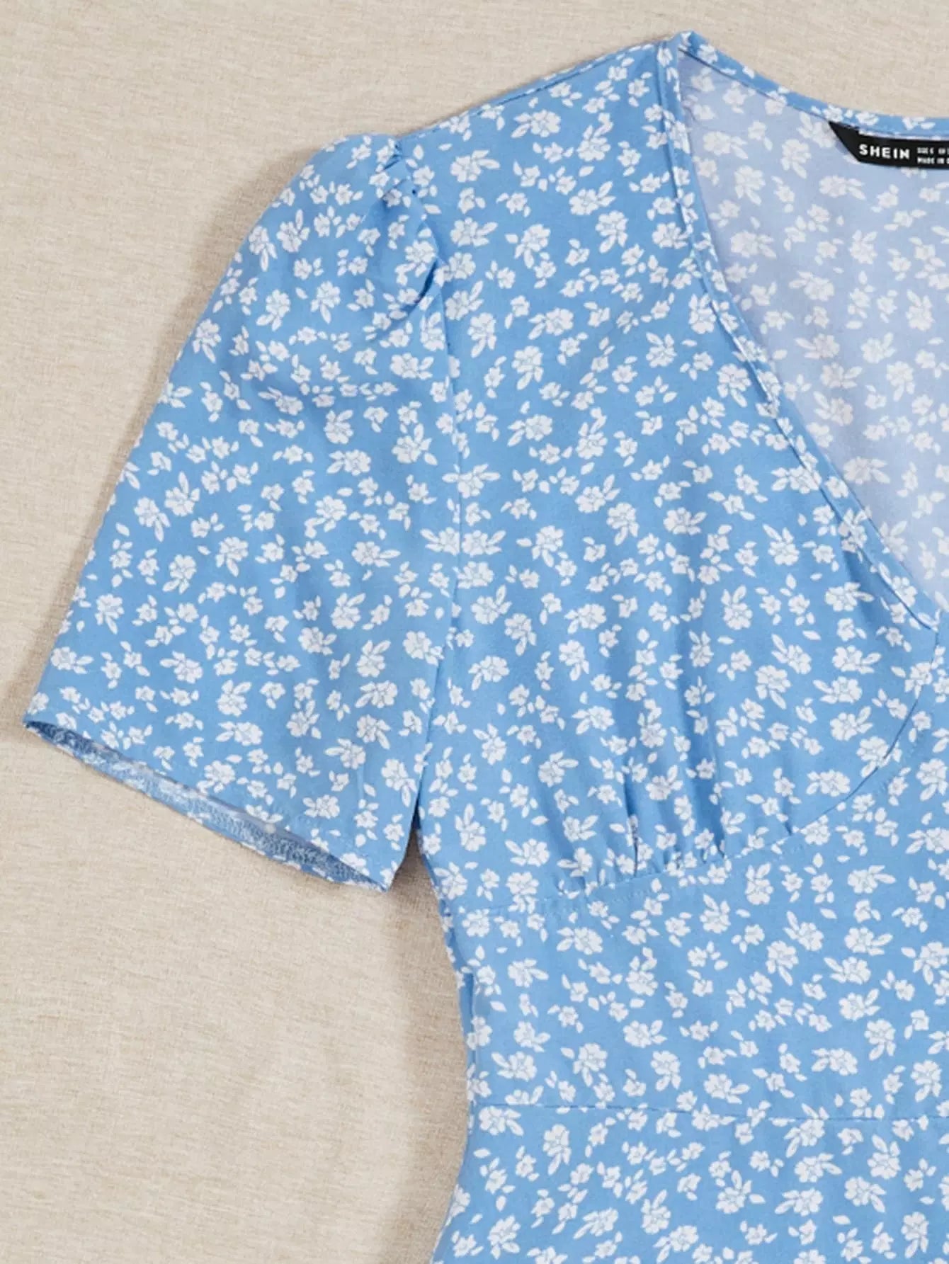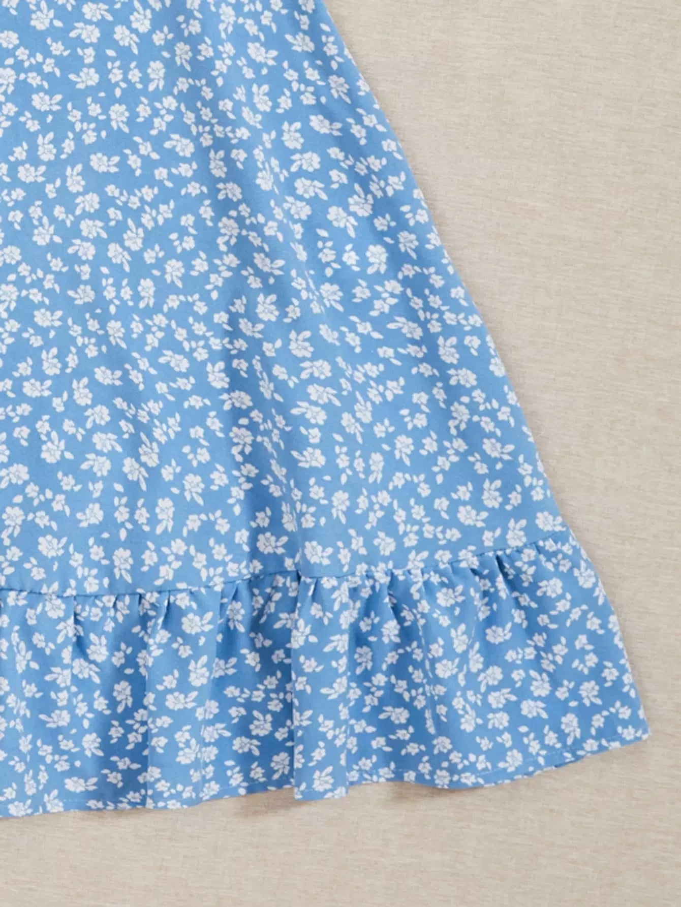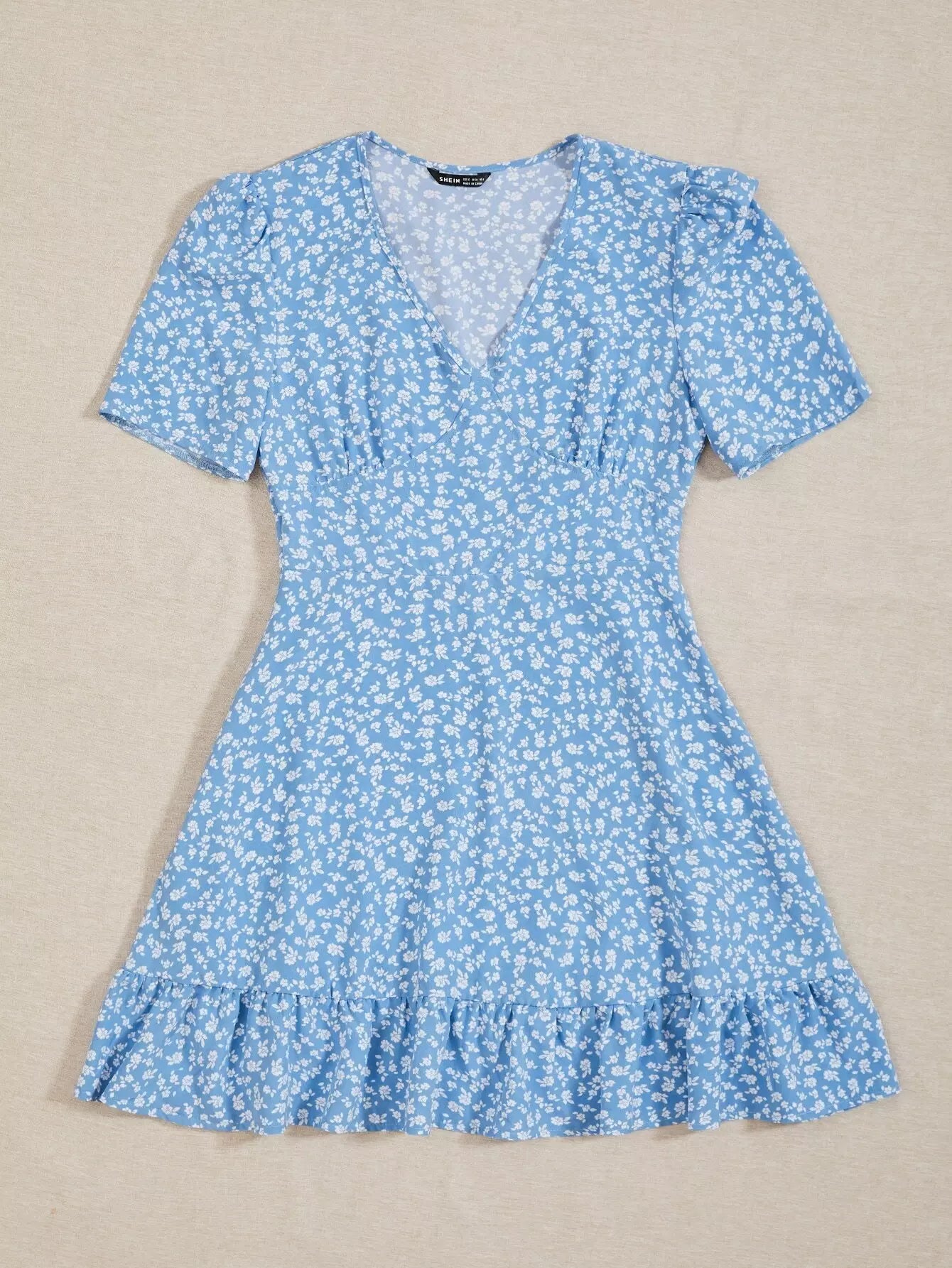 فستان بطبعات الأزهار الصغيرة مع حافة مكشكشة