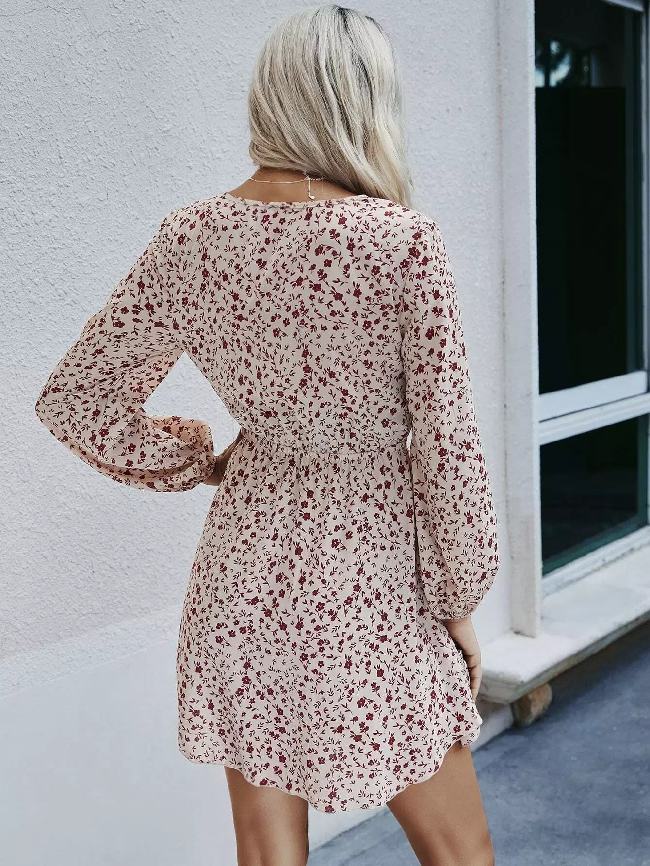 فستان ديتسي مزين بربطة عنق زهرية بأكمام أسقف ذات طبقات