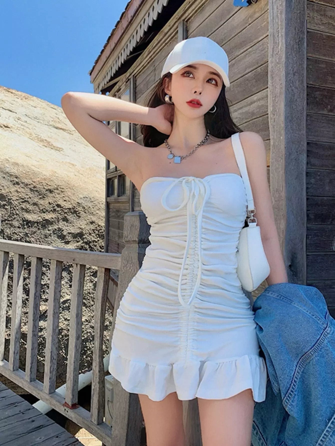 فستان بحاشية مكشكشة وتفاصيل رباط