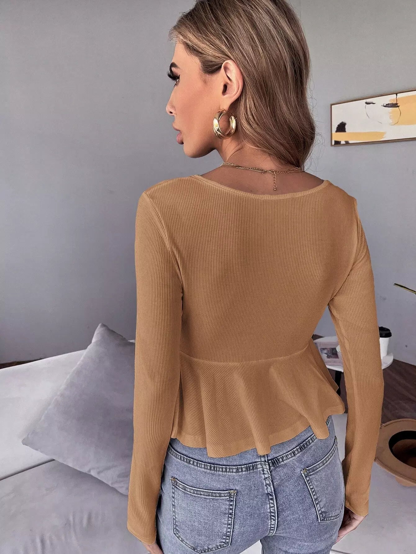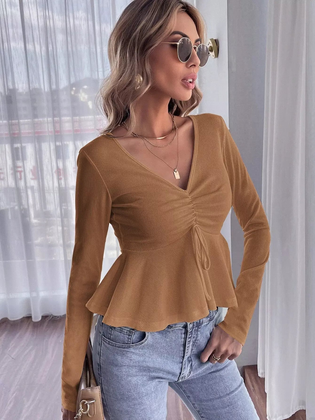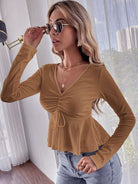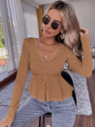 تي شيرت برباط أمامي محبوك برباط أمامي مضلع محبوك