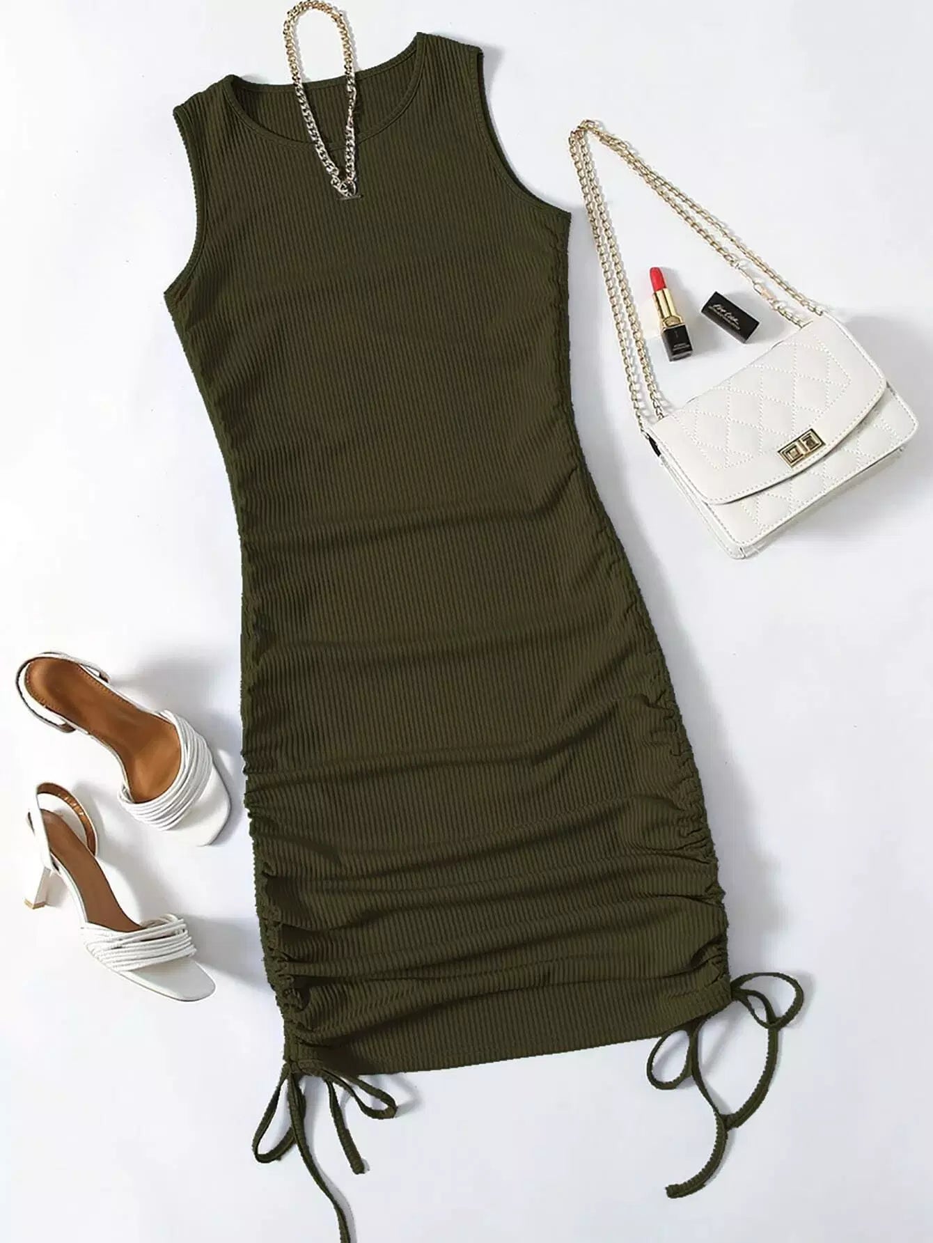 فستان برباط جانبي محبوك برباط مضلع محبوك من الجانب