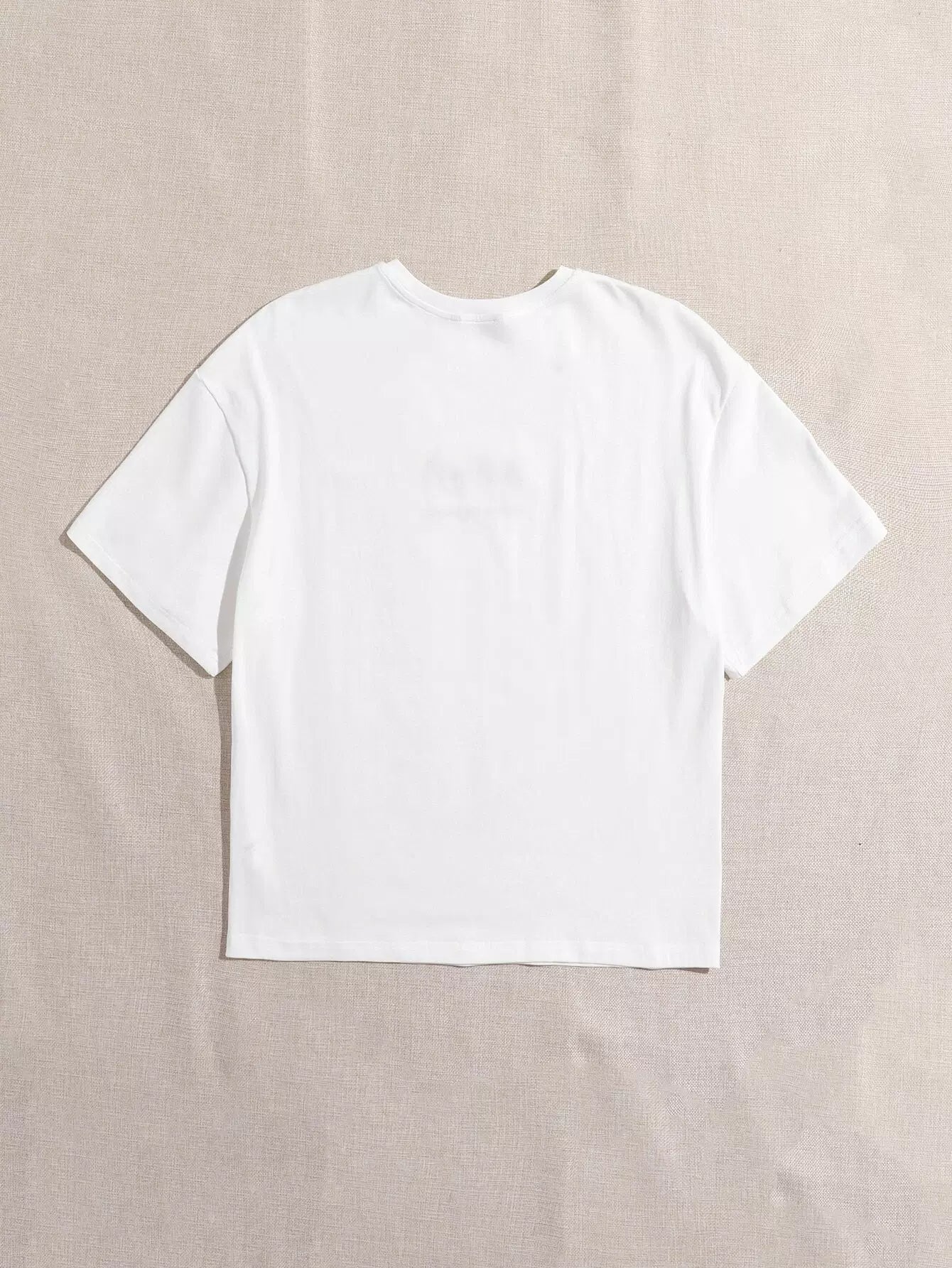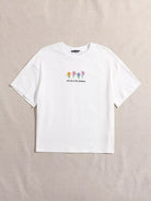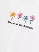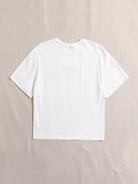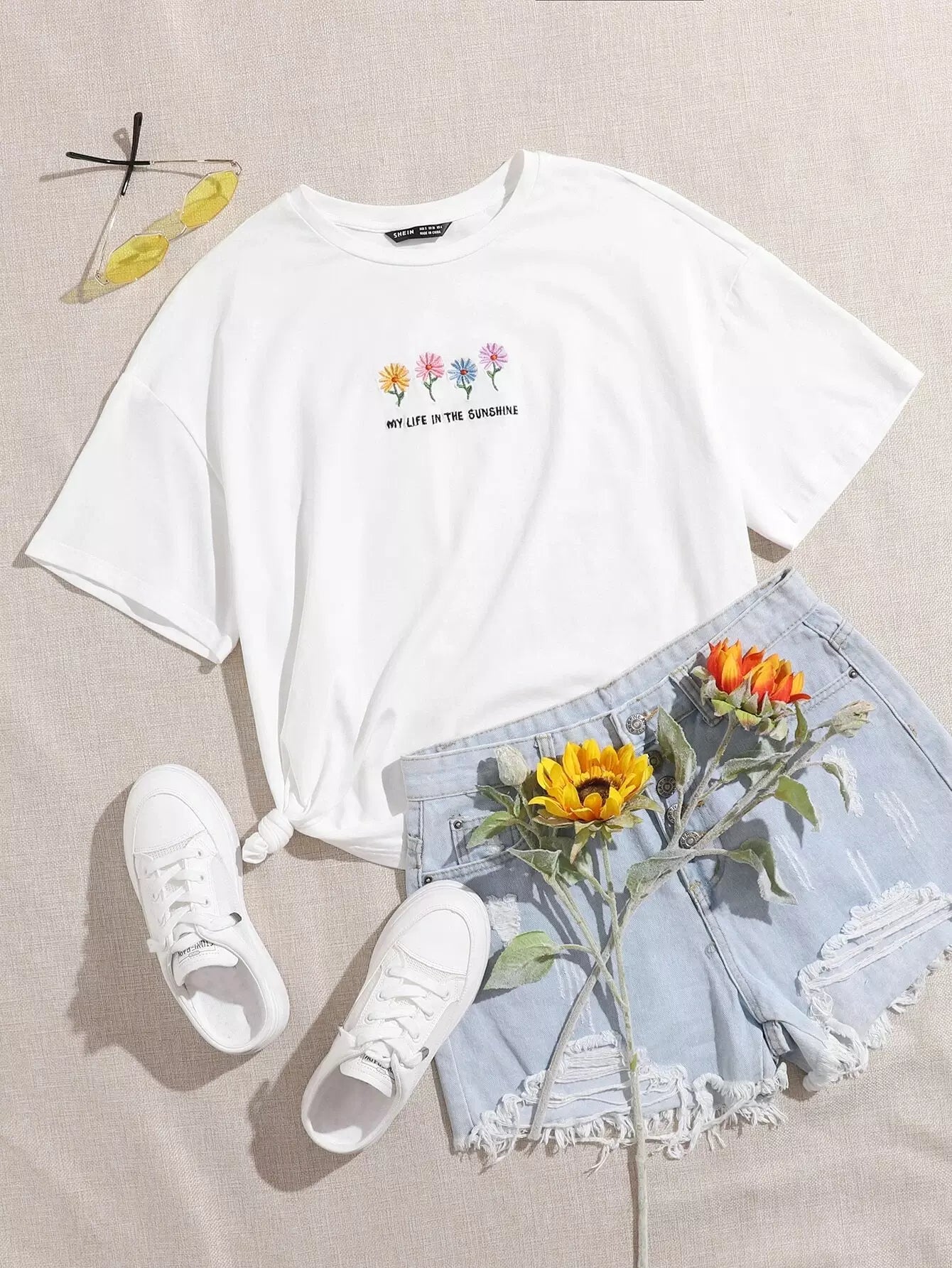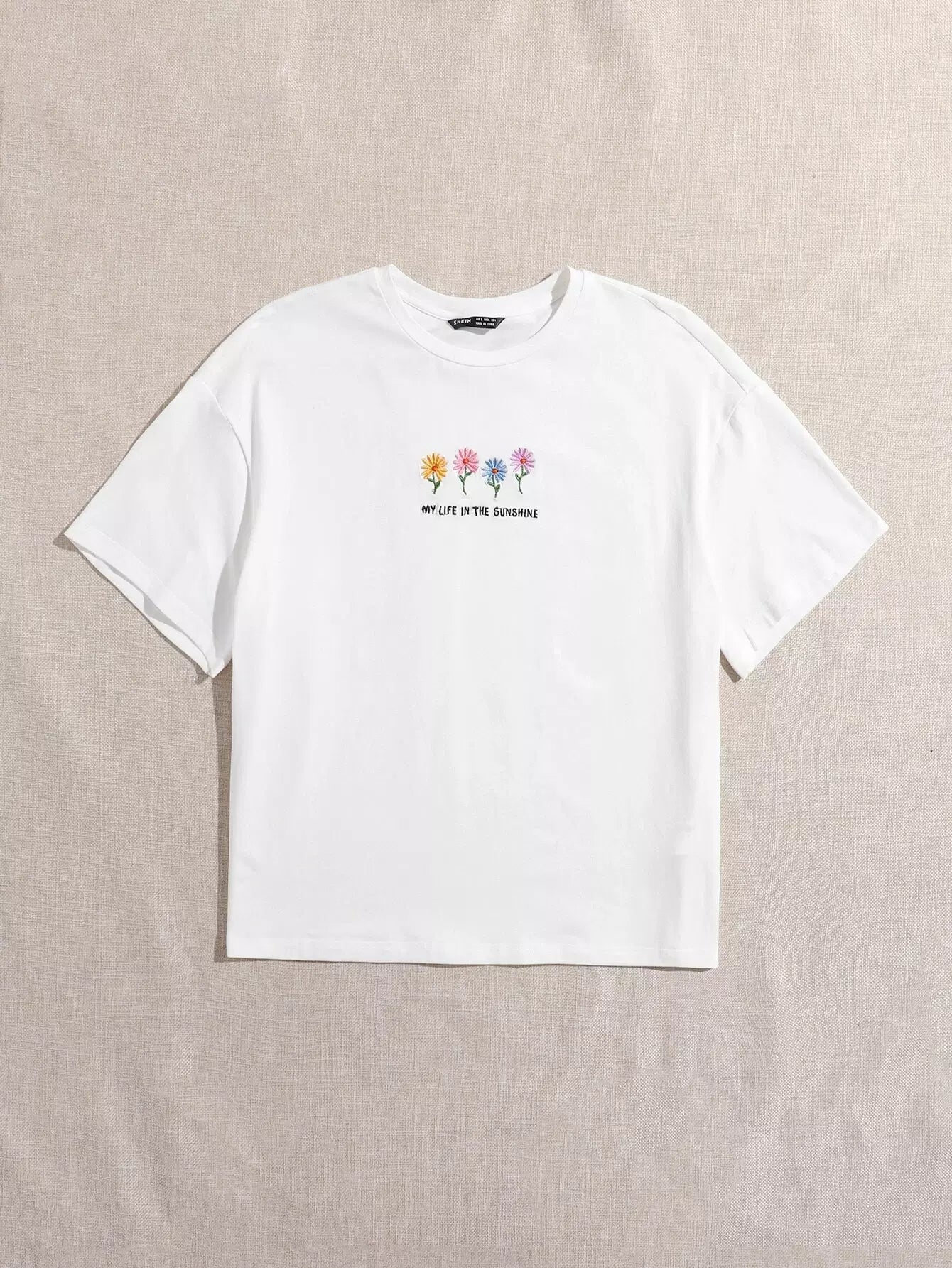 تي شيرت بحروف منسدلة على الأكتاف وتطريزات زهرية