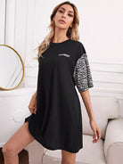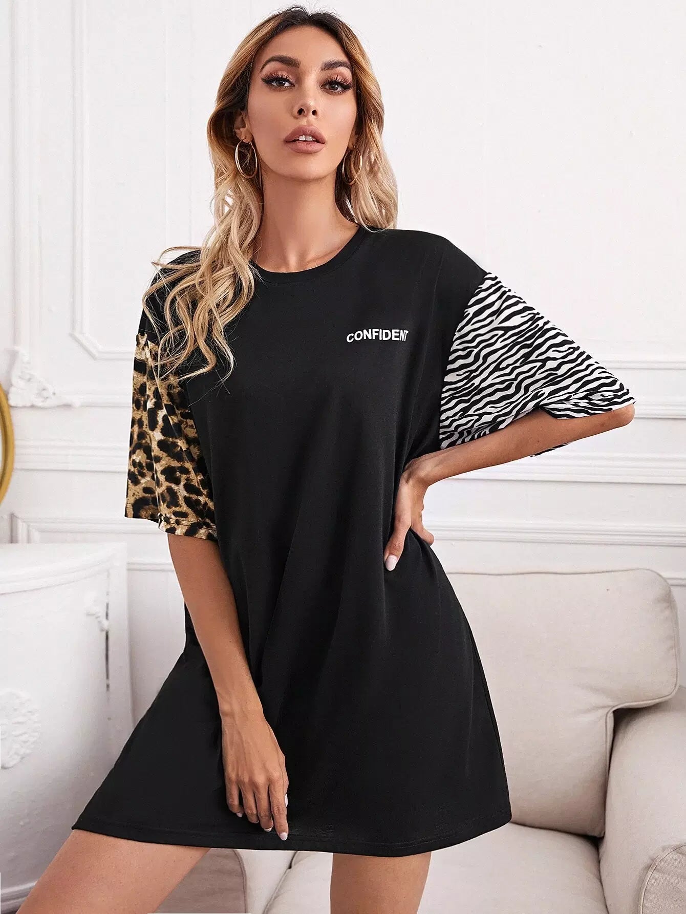 تي شيرت منسدل الكتفين برسومات على شكل حرف ملون
