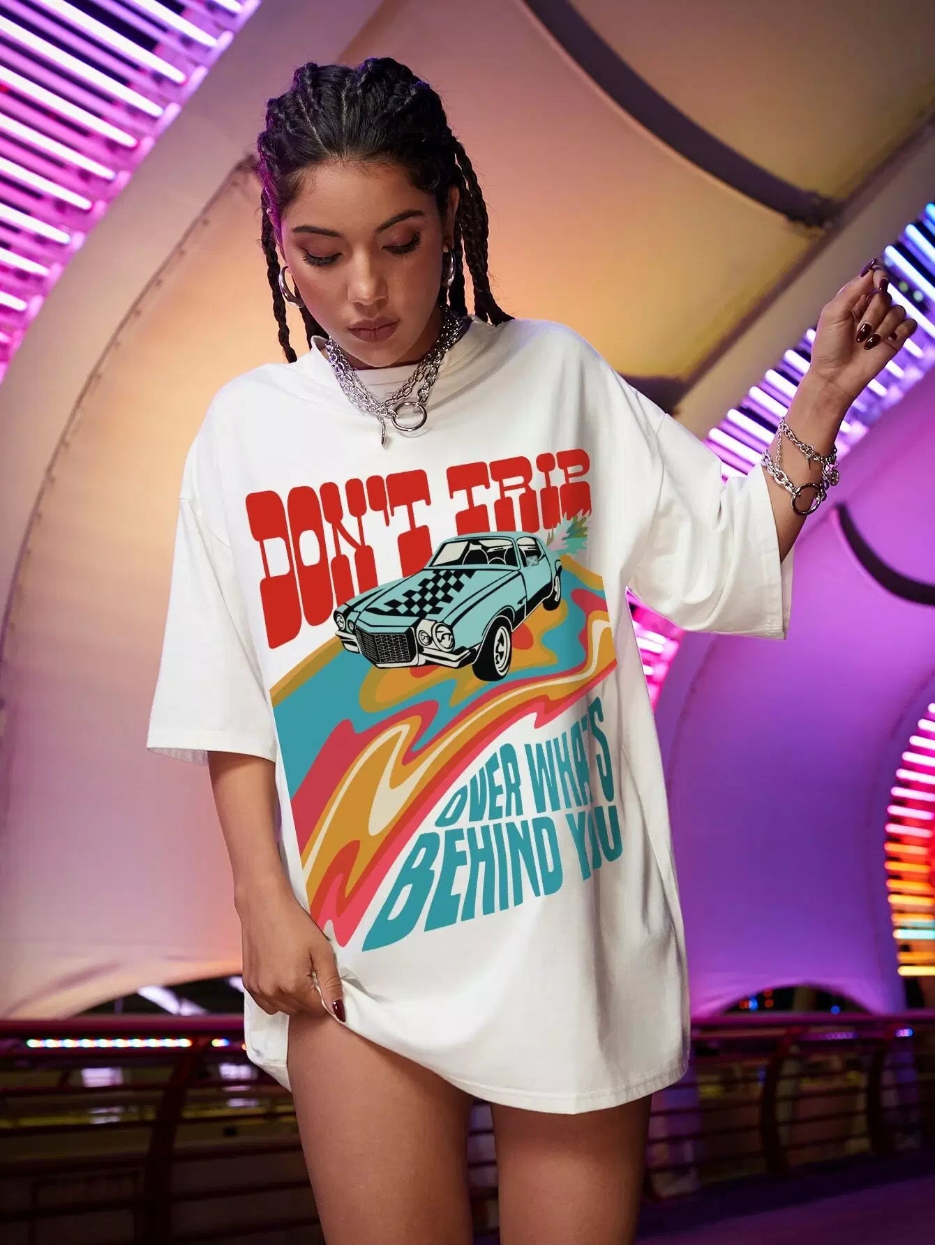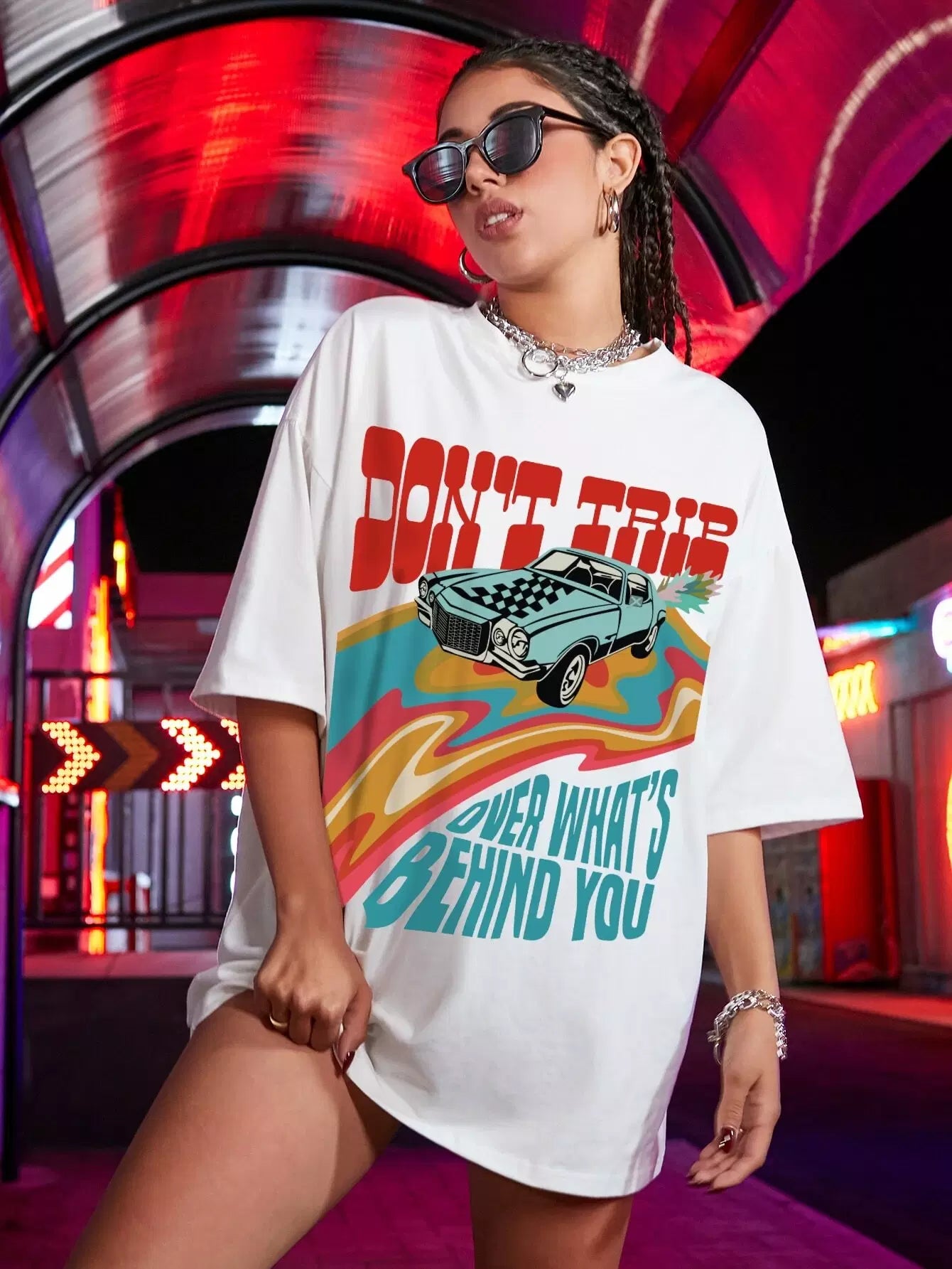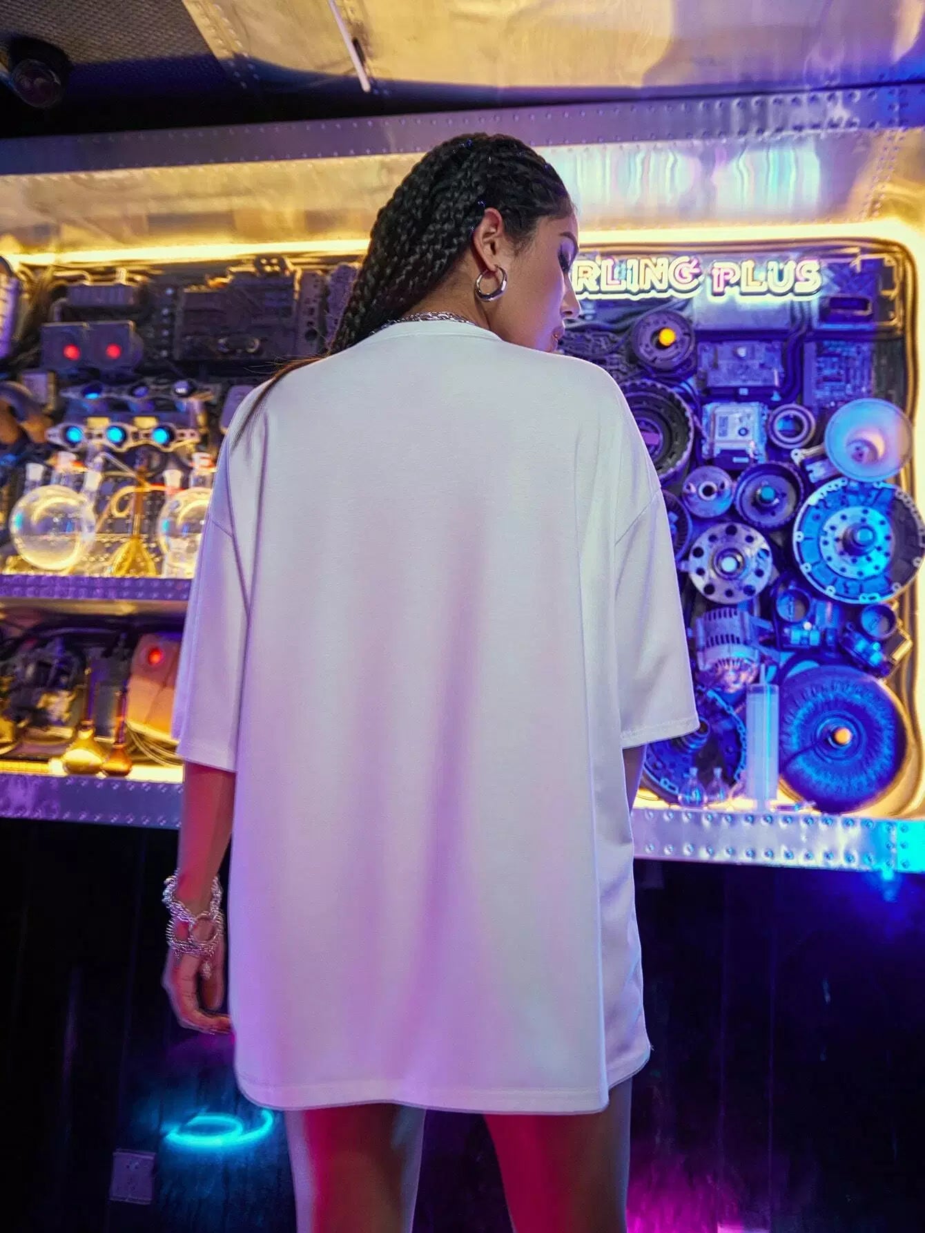 تي شيرت ذو أكتاف منسدلة برسومات على الأكتاف كبيرة الحجم