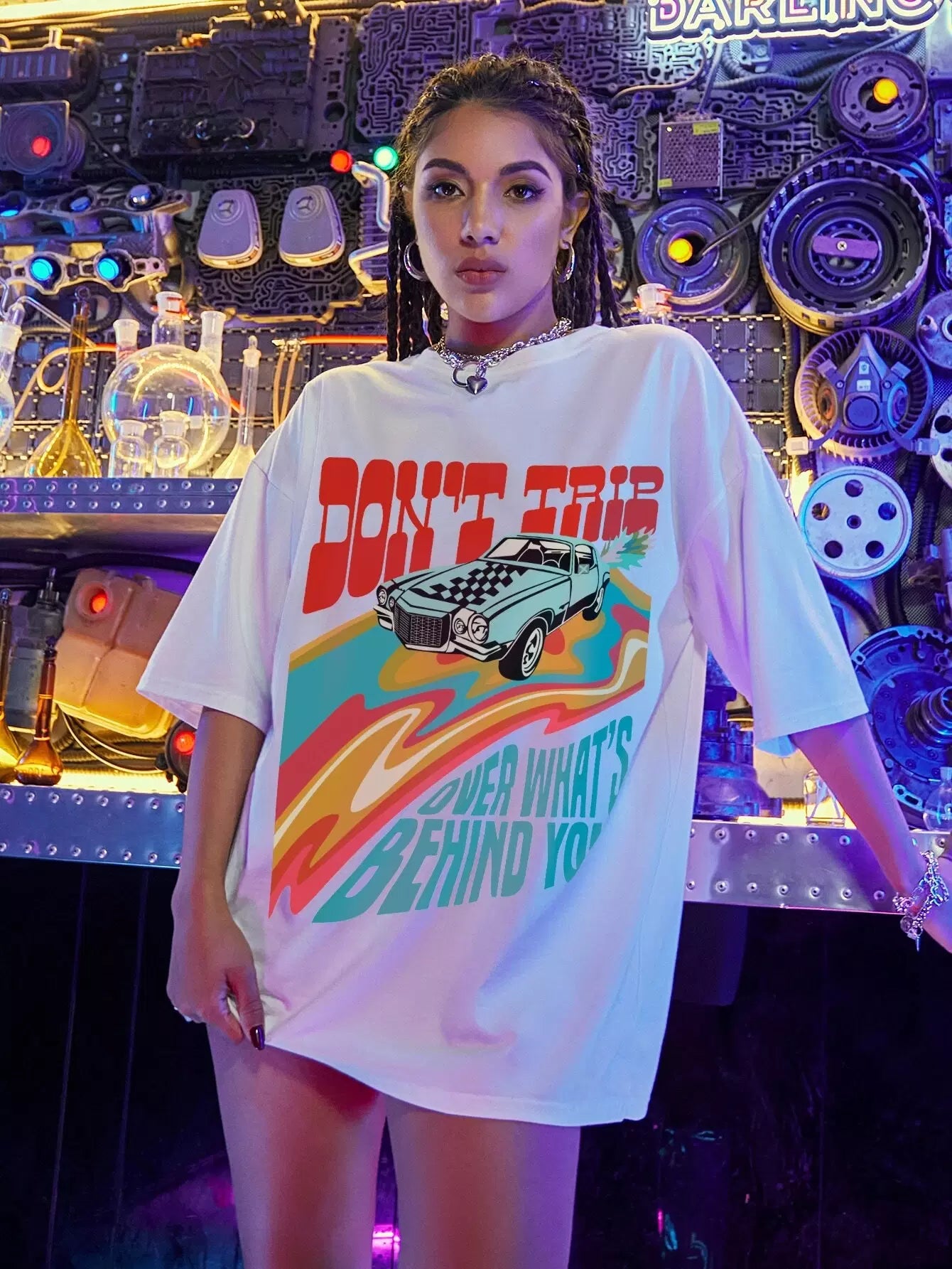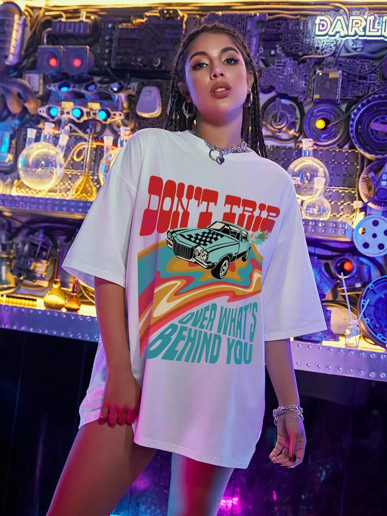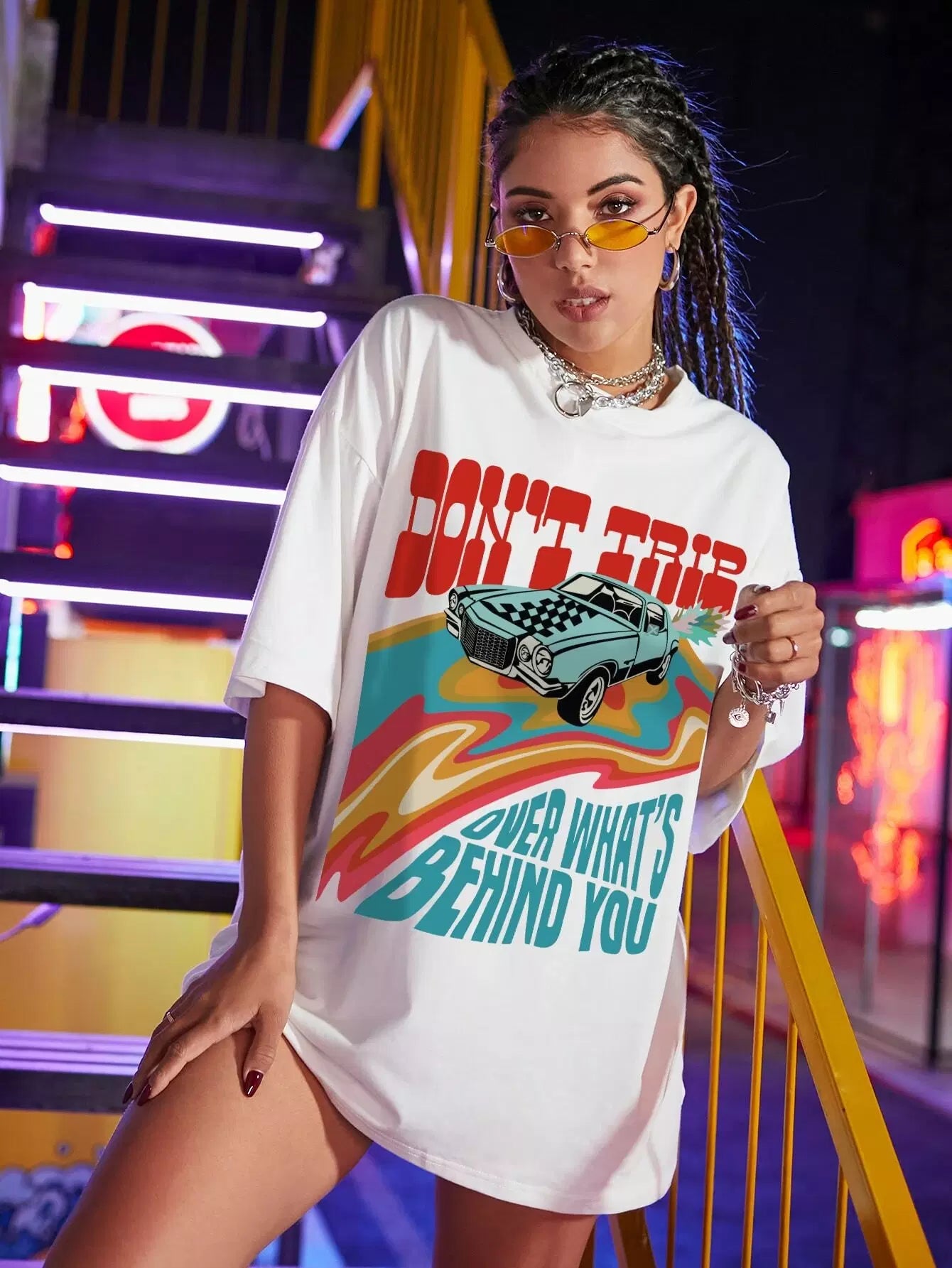 تي شيرت ذو أكتاف منسدلة برسومات على الأكتاف كبيرة الحجم