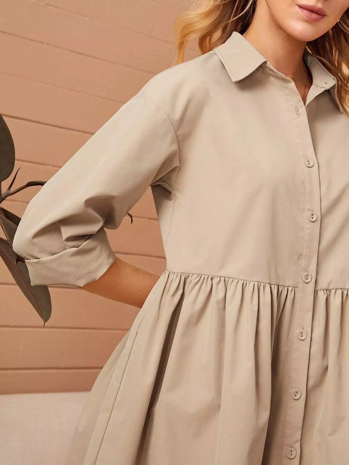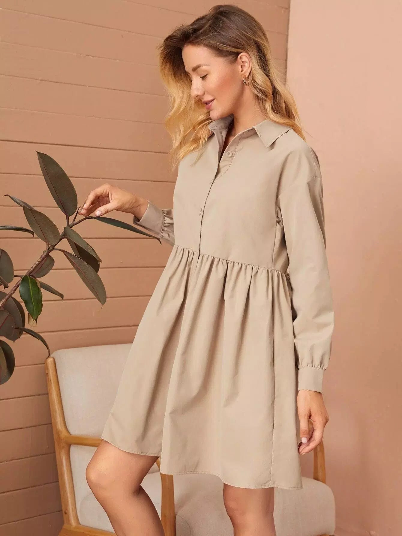 فستان سادة منسدل الكتفين بقميص سادة منسدل الكتفين