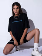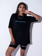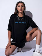 تي شيرت بأكتاف منسدلة بجناح وشعار جرافيك كبير الحجم