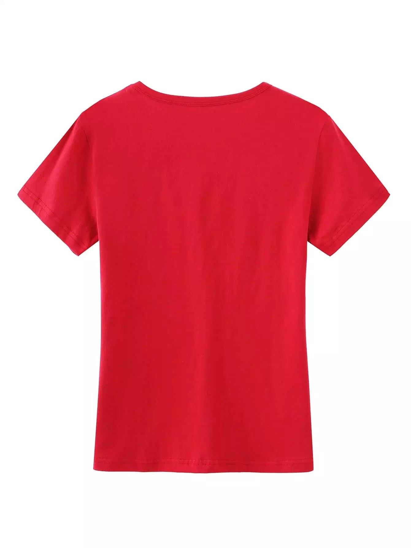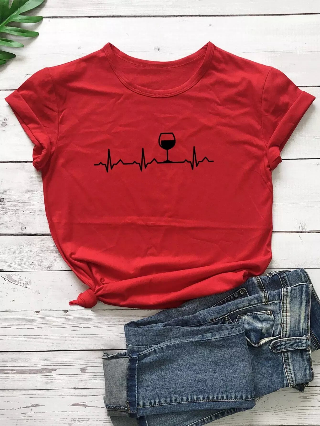 للنساء - تي شيرت مطبوع عليه رسم تخطيط القلب والنبيذ