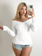 EgrlEra Women's Plain Color Off-Shoulder Long Sleeve Casual Sweater, Autumn/Winter Y2K Outfit? Knit Pullover