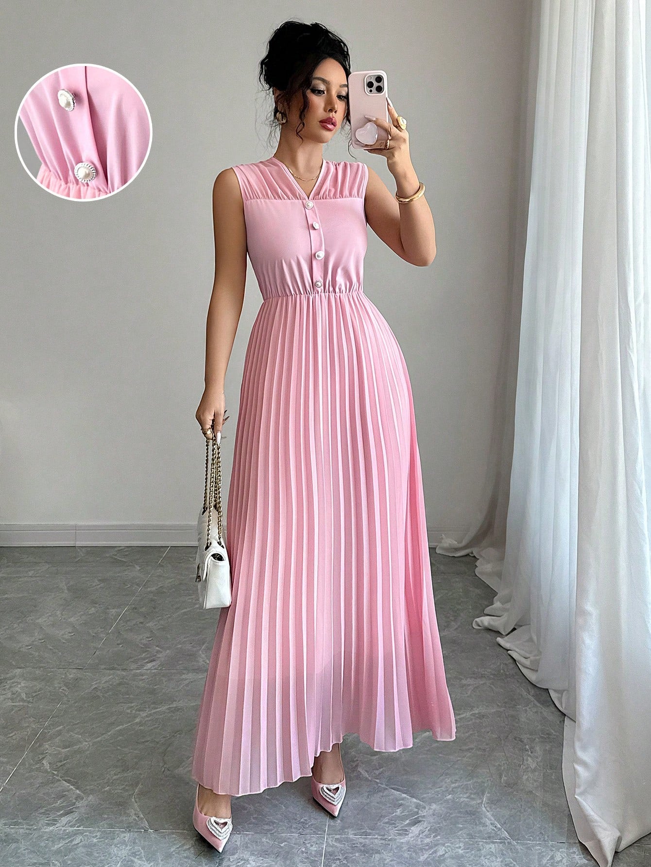 فستان إلينزجا الأنيق الطويل ذو الخصر المشدود، وردي اللون، مناسب للتنقل