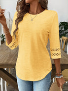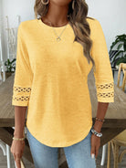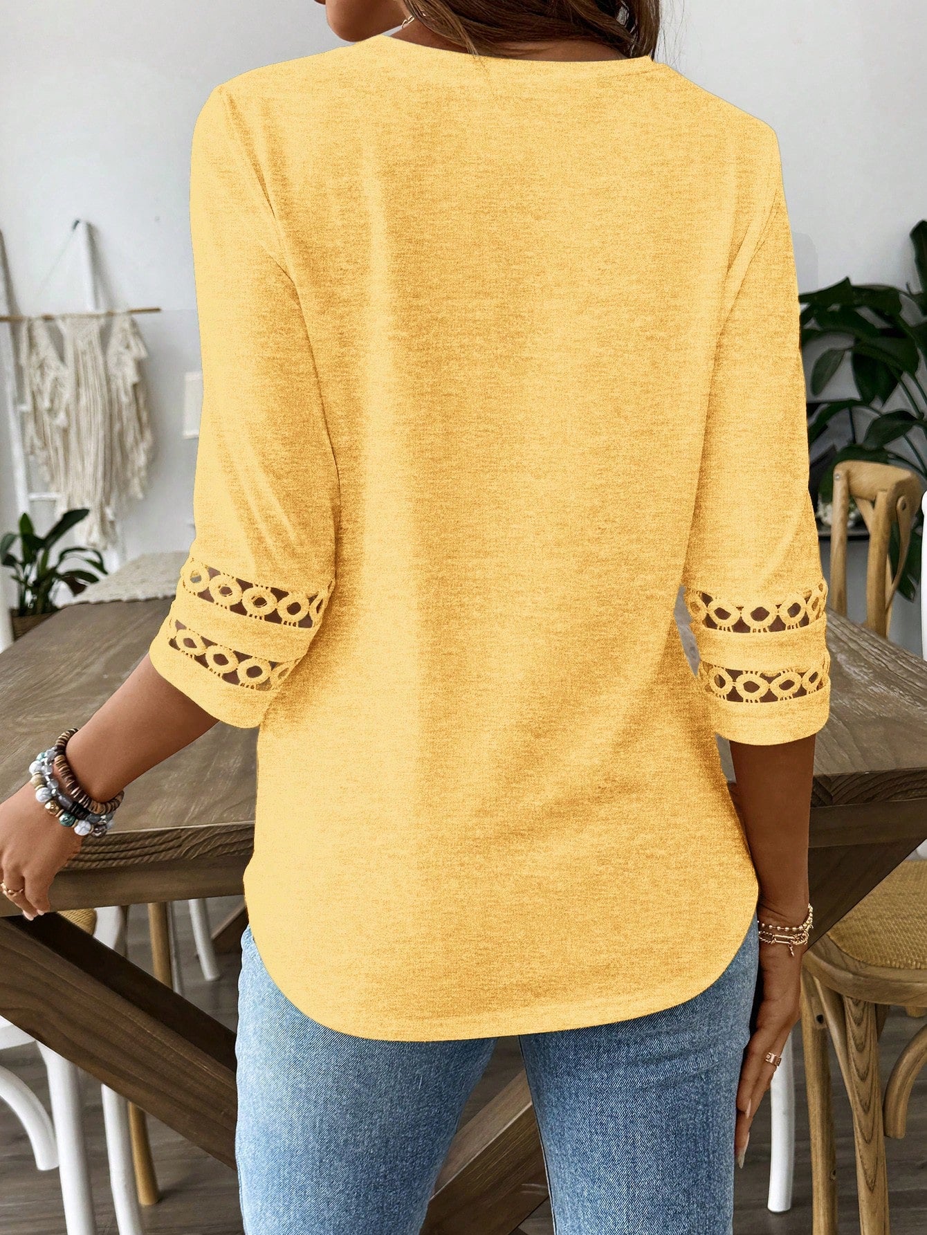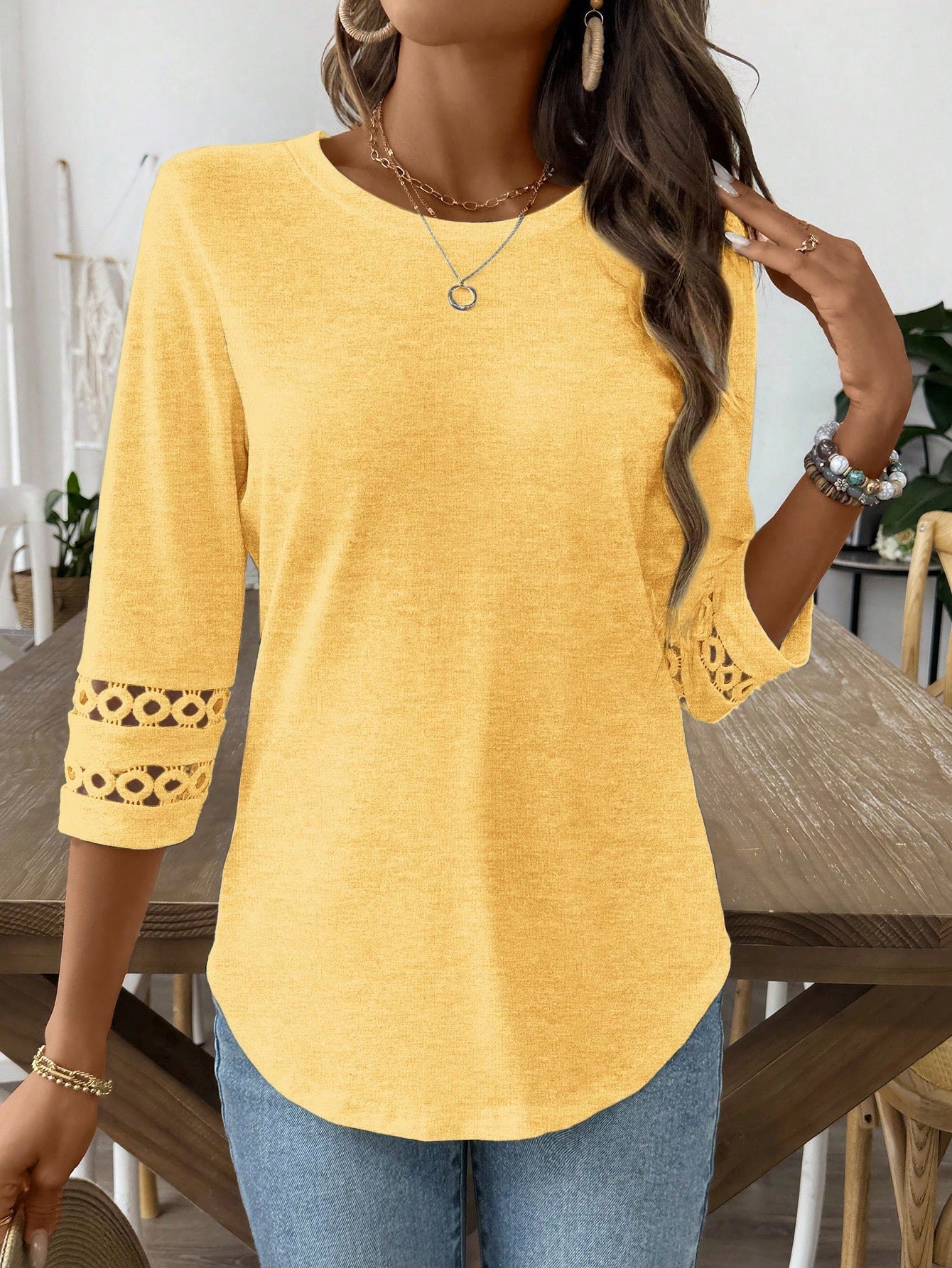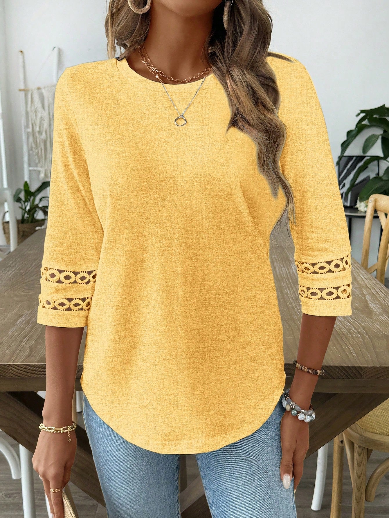 EMERY ROSE Casual Solid Color Curved Hem T-Shirt, Spring Autumn