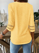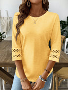 تي شيرت EMERY ROSE كاجوال بلون واحد وحافة منحنية، ربيع وخريف