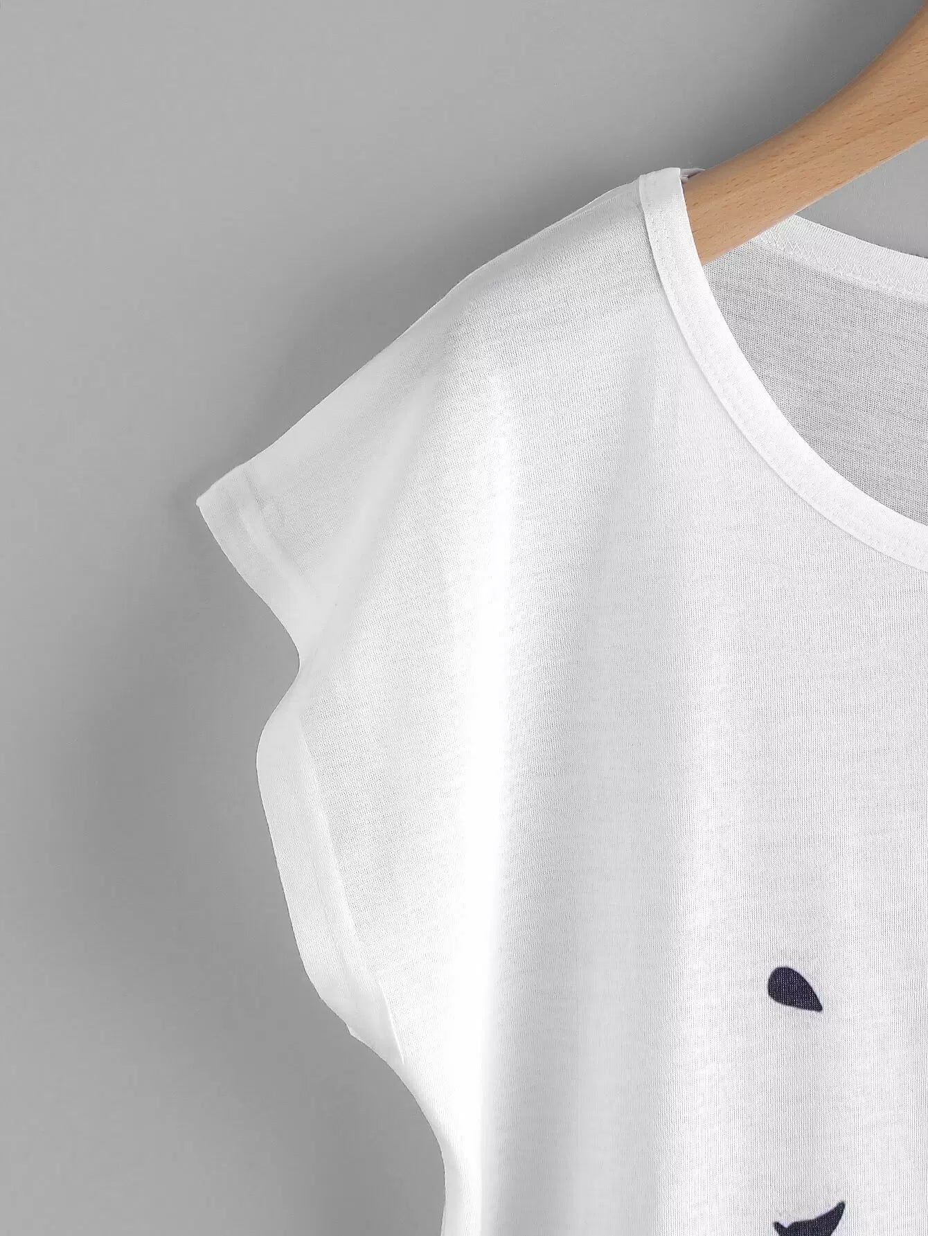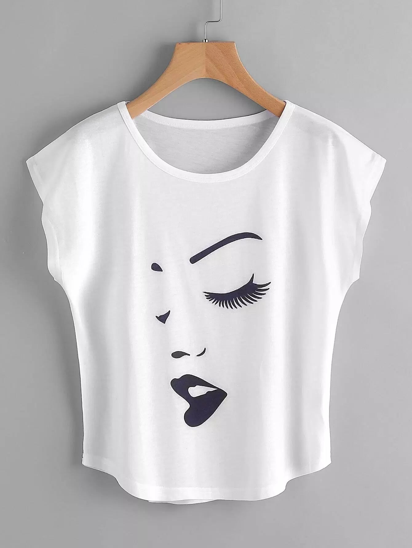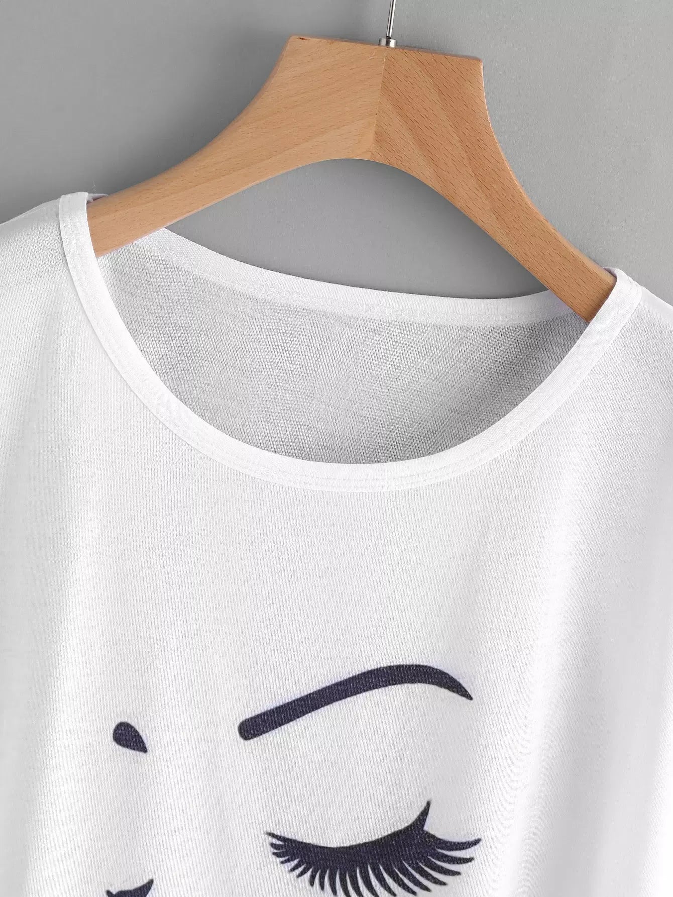 تي شيرت بأكمام دولمان مطبوع على الوجه