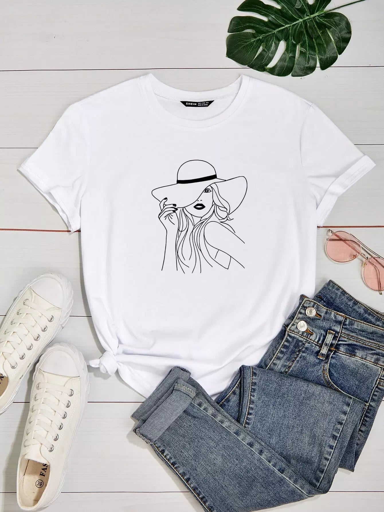 تي شيرت بأكمام قصيرة الأكمام على شكل جرافيك