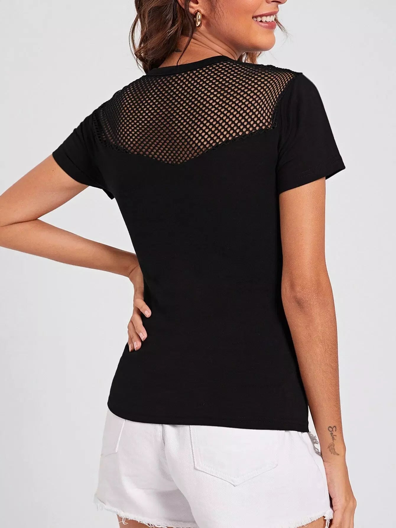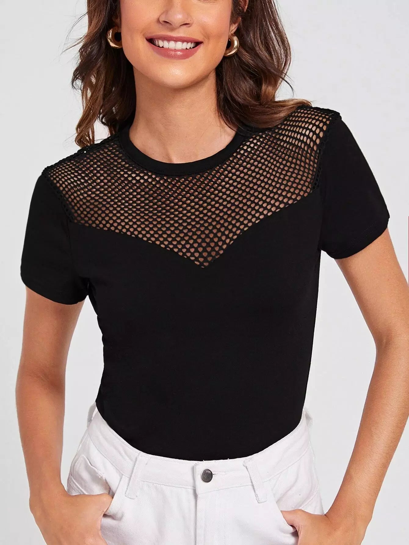 بلوزة شبكية بنقشة شبكية على شكل نير
