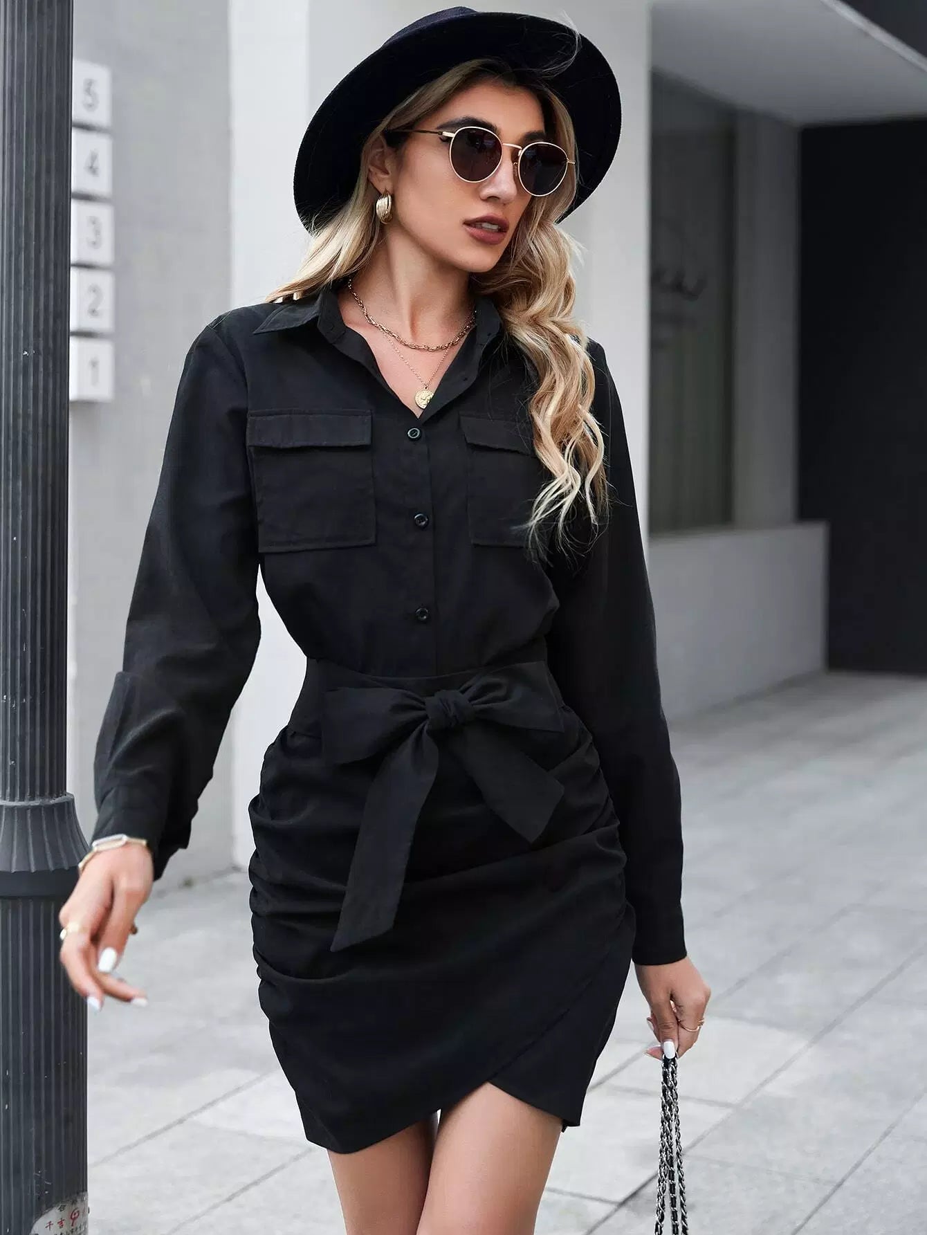 بلوزة بجيب بغطاء جراب وتنورة ملفوفة