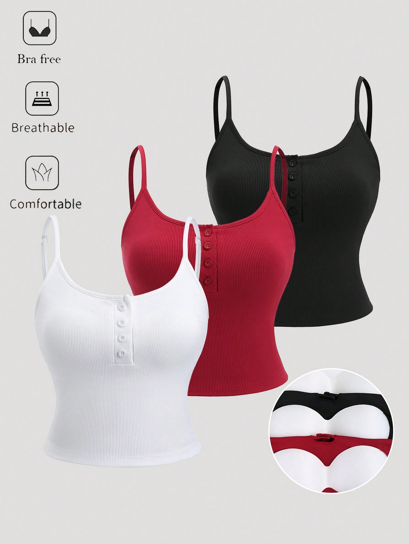 Flirla 1set Women Solid Color Personalized Padded Camisole