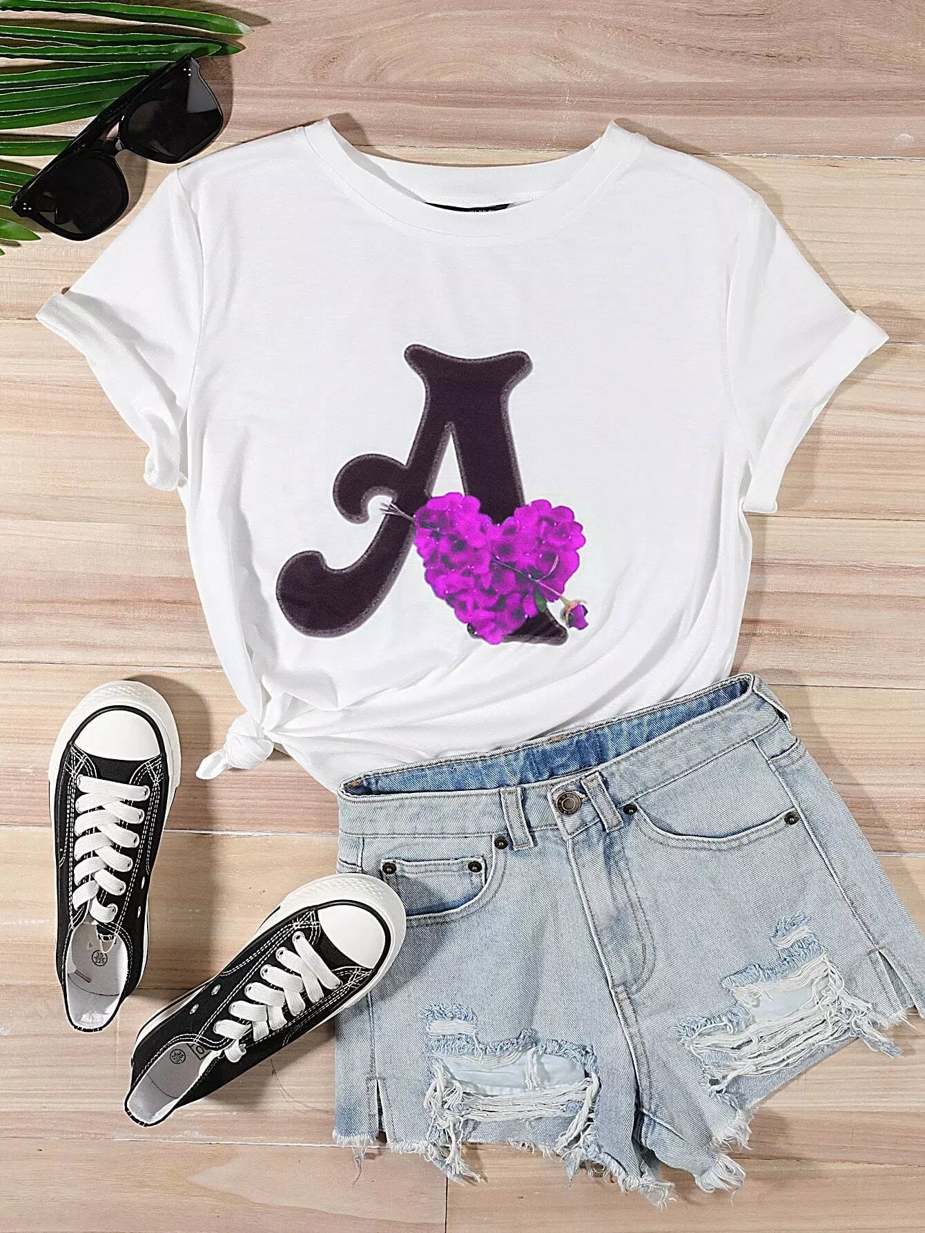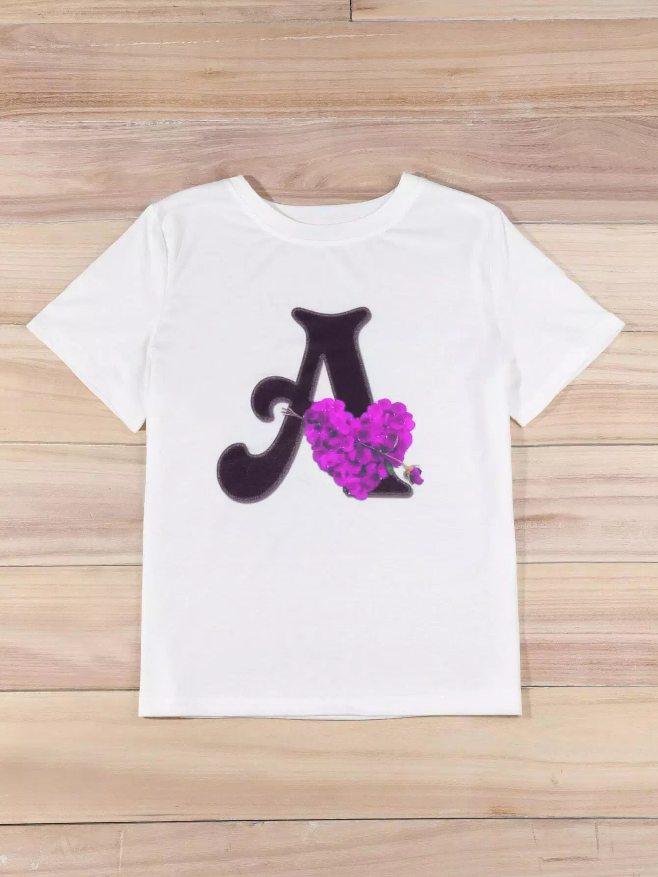 تي شيرت برسومات زهور وحروف