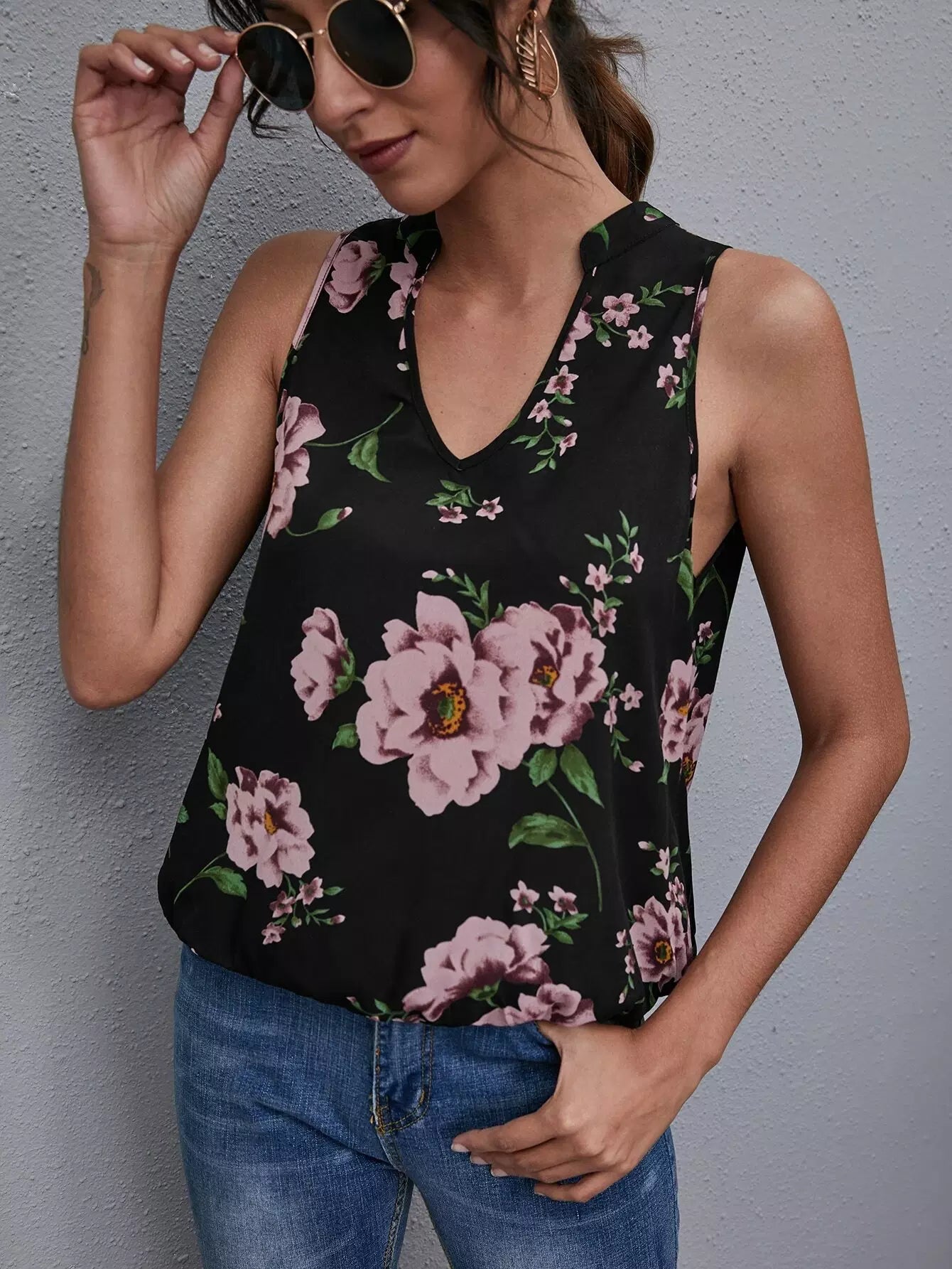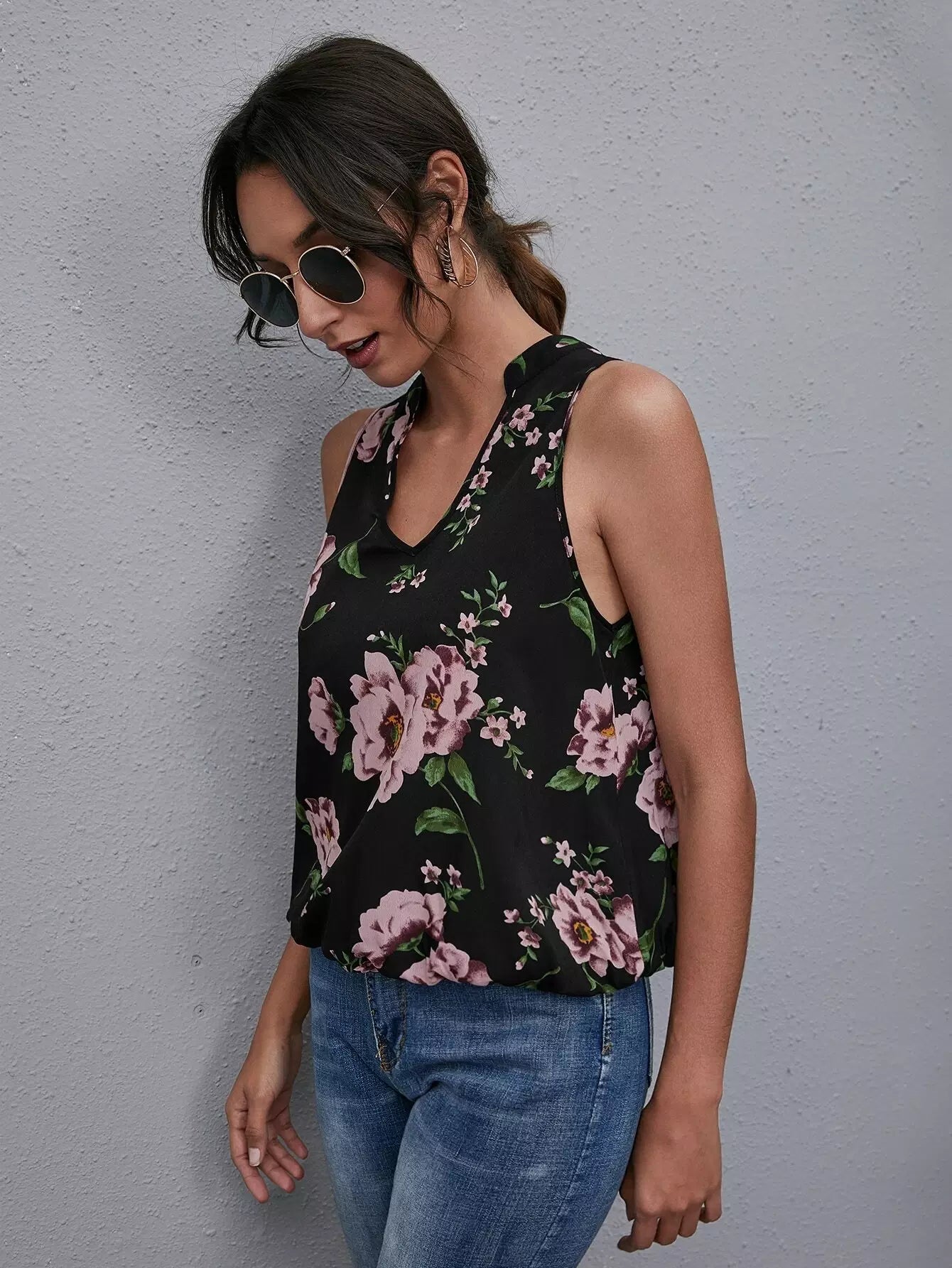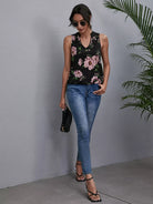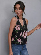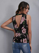Floral Notched Neck Cut Out Back Top