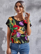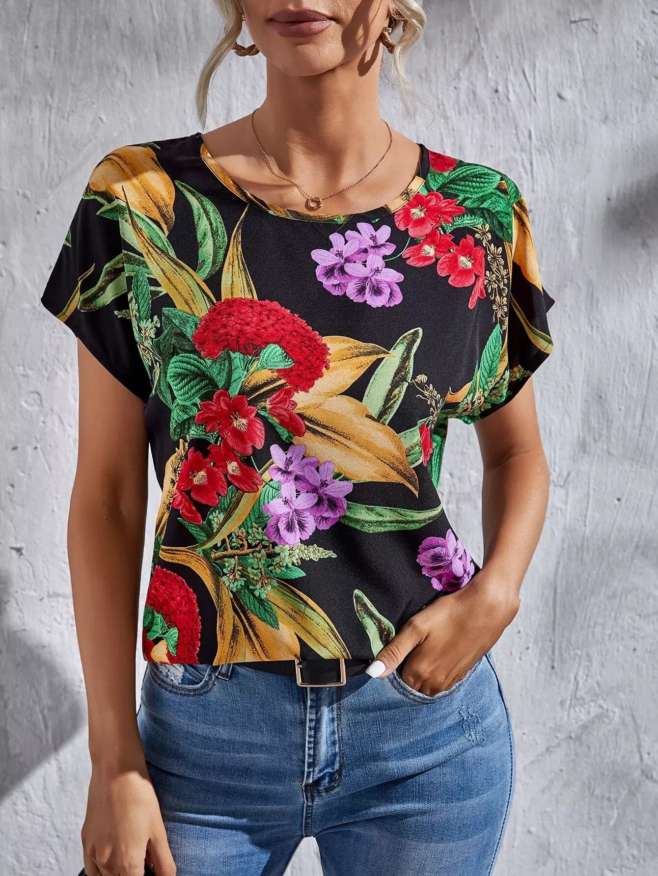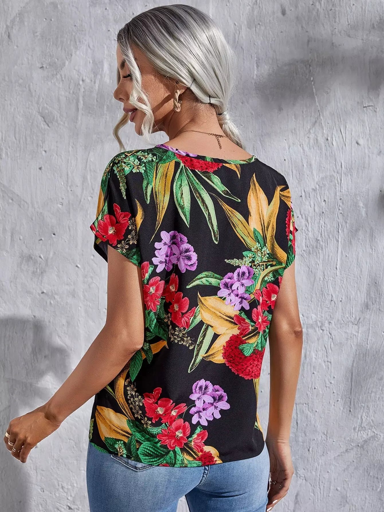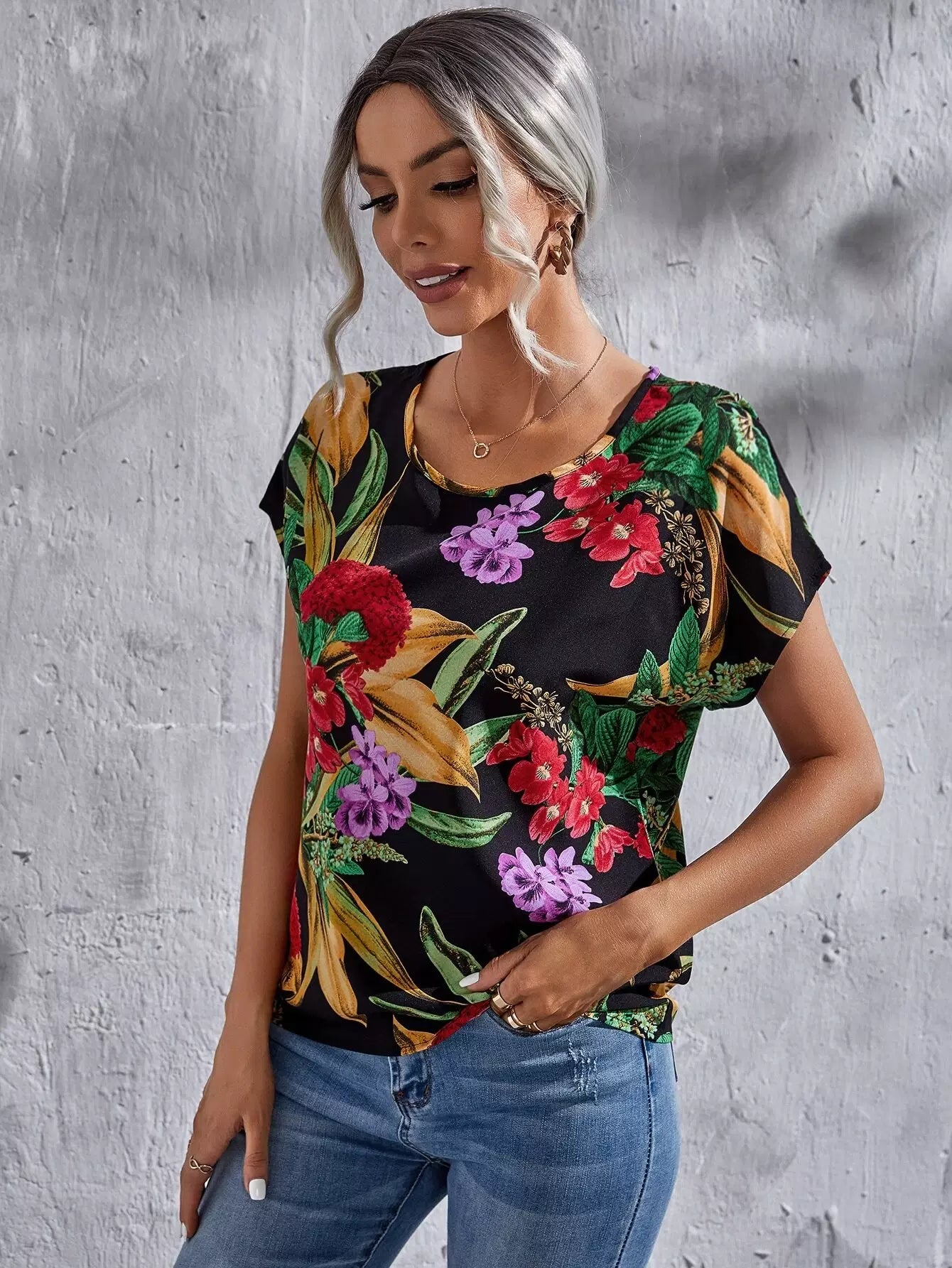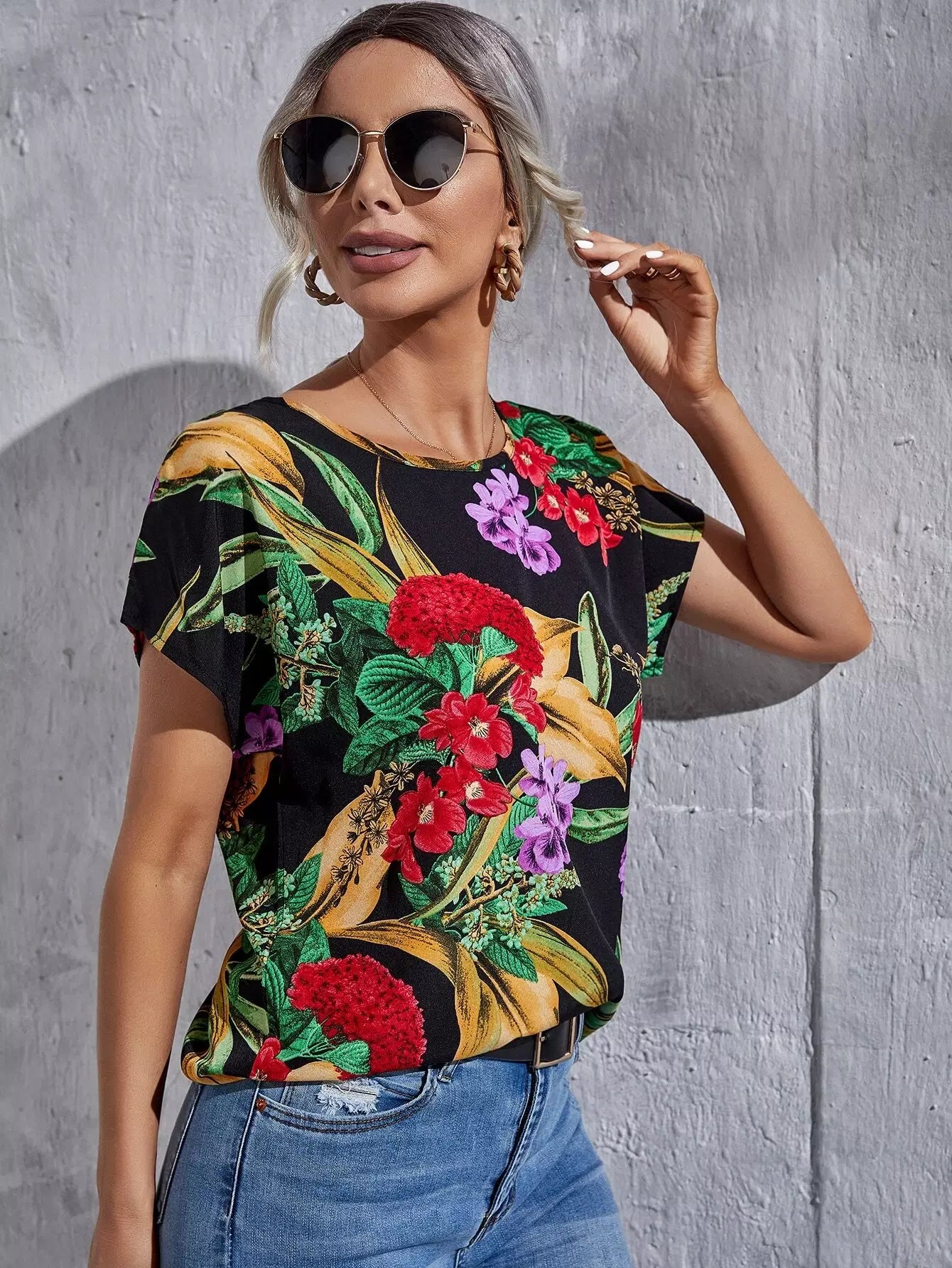 بلوزة بأكمام باتوينغ مطبوع عليها أزهار